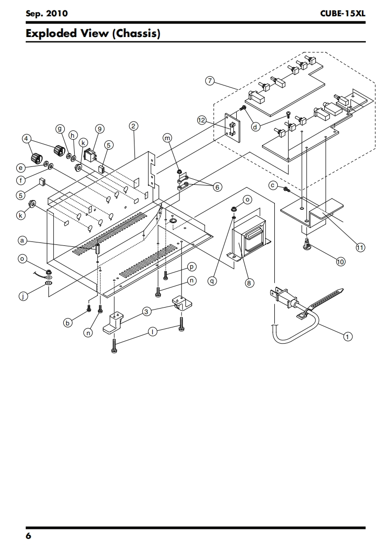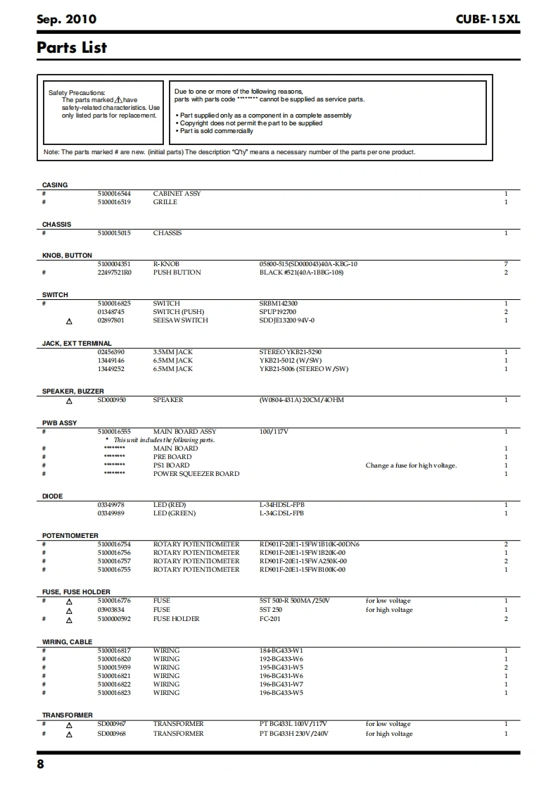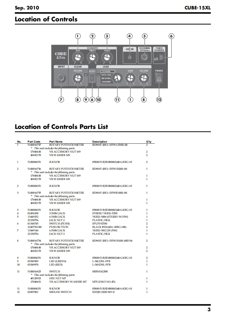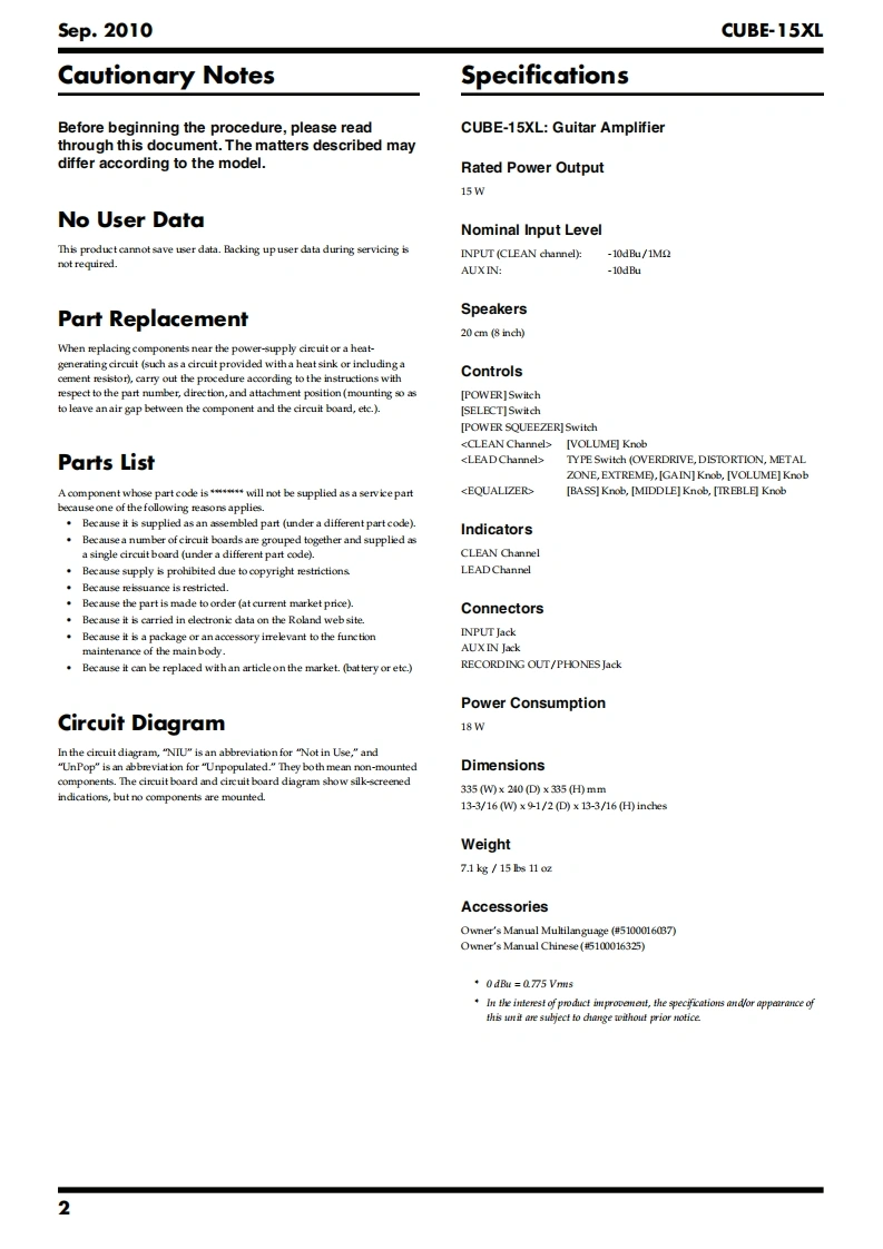Sep.2010CUBE-15XⅫB-SERVICE NOTESIssued by RJATable of ContentsCautionary Notes.............2Parts List .....8SpecificationS.2Verification of OperationLocation of Controls...3Block Diagram .......12Location of Controls Parts List3Circuit Board(Main,PRE,PS1,Power SqueezerExploded View (Cabinet)4.Board)13Exploded View (Cabinet)Parts List.........5Circuit Diagram(Main,PRE,PS1,Power SqueezerExploded View (Chassis)6B0ard)l4Exploded View (Chassis)Parts List.......7W田品LEADCopyright 2010 Roland CorporationAll rights reserved.No part of this publication may be reproduced in any form without the written permissionof Roland Corporation.Roland17058697E0CC-KWS