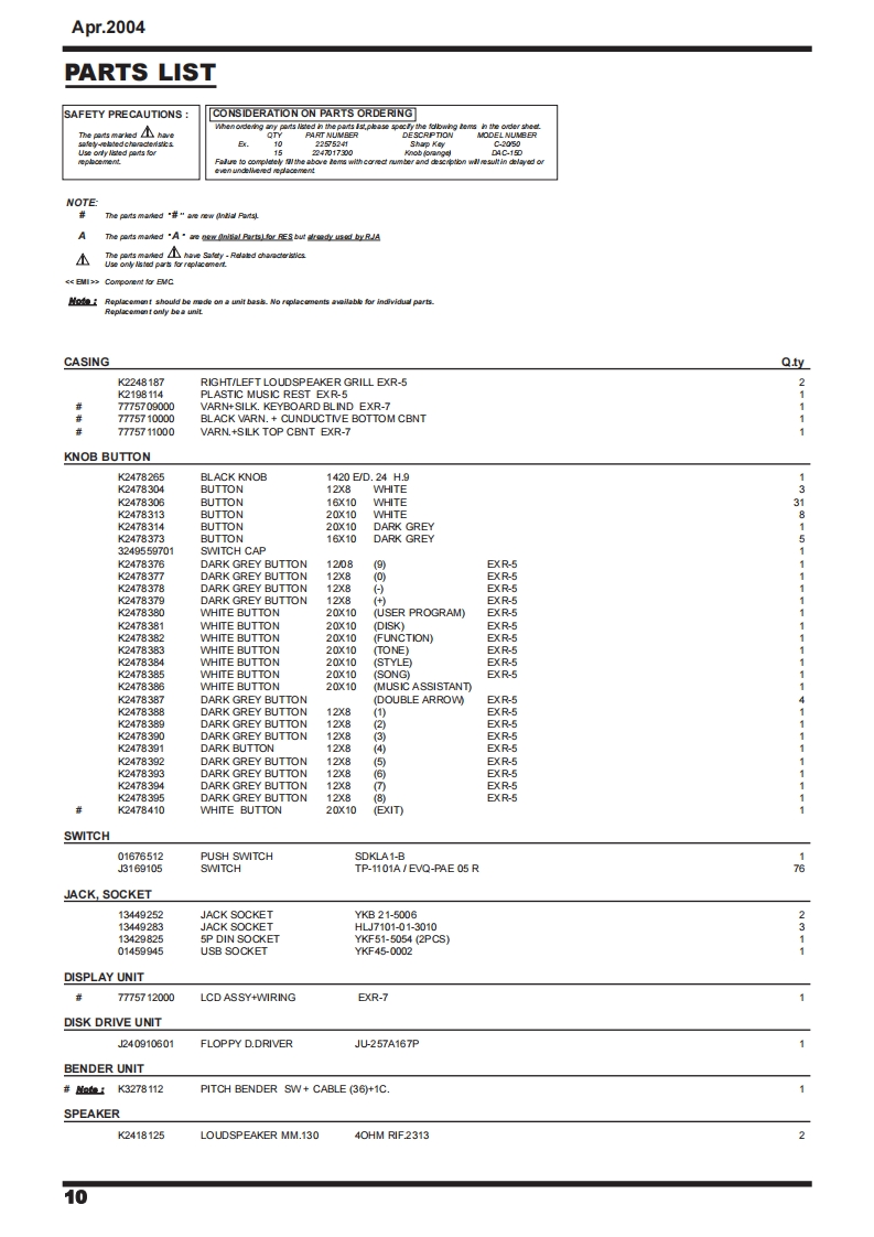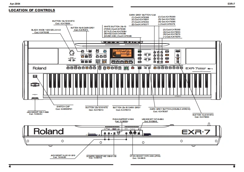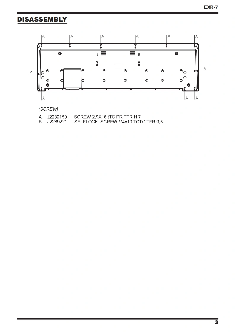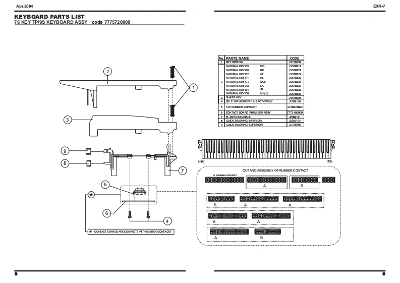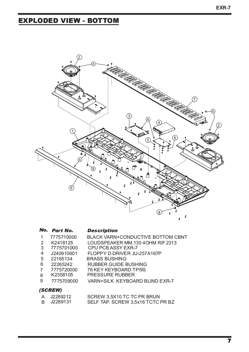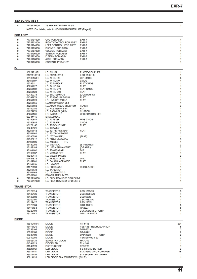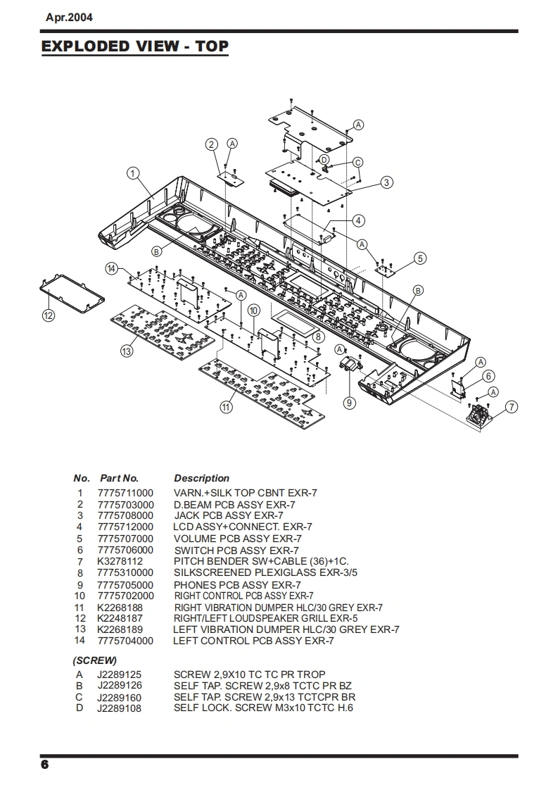 Apr.2004EXR-7三×只-7SERVICE NOTESFirst editionINTERACTIVE ARRANGERIssued by RESTABLE OF CONTENTSSPECIFICATIONSCIRCUIT DIAGRAM (MAIN 7/7-USB section)7DISASSEMBLY3CIRCUIT BOARD (JACK)42LOCATION OF CONTROLSCIRCUIT DIAGRAM (JAC灯EXPLODED VIEW (TOP)6CIRCUIT BOARD (RIGHT CONTROL/D-BEAM)4EXPLODED VIEW(BOTTOM)CIRCUIT DIAGRAM (RIGHT CONTROL/D-BEAM)KEYBOARD PARTS LISTCIRCUIT BOARD (LEFT CONTROL)%PARTS LIST10/13CIRCUIT DIAGRAM (LEFT CONTROL)52HOWTO SAVE-HOWTO VERSION UP14CIRCUIT BOARD (PHONES)54HOWTO VISUALIZE THE SOFTWARE VERSION14CIRCUIT DIAGRAM (PHONES)55HOWTO SAVE THE SOFTWARE ONA FLOPPY DISKCIRCUIT BOARD (VOLUME)HOWTO UPDATE THE SOFTWARE15CIRCUIT DIAGRAM VOLUME)6HOWTO CARRY OUT THE FACTORY SETUP15CIRCUIT BOARD (SWITCH)54TEST MODE1624CIRCUIT DIAGRAM (SWITCH)BLOCK DIAGRAM26CIRCUIT BOARD (CONTACT BOARD)56CIRCUIT BOARD (MAIN)28CIRCUIT DIAGRAM (CONTACT BOARD)CIRCUIT DIAGRAM (MAIN 1/7)30CIRCUIT DIAGRAM (MAIN 2/7-XP section)32CIRCUIT DIAGRAM (MAIN 3/7-KEY section)34CIRCUIT DIAGRAM (MAIN 4/7-MEMORY section)CIRCUIT DIAGRAM (MAIN 5/7-D-BEAM section)38CIRCUIT DIAGRAM (MAIN 6/7-FDC section)40西内回RolandCopyright 2004 by ROLAND CORPORATIONAll rights reserved.No parts of this publication may be reproduced in any form whithout the written permission ofROLAND CORPORATION.RolandSN00075K6018551Printed in Italy
