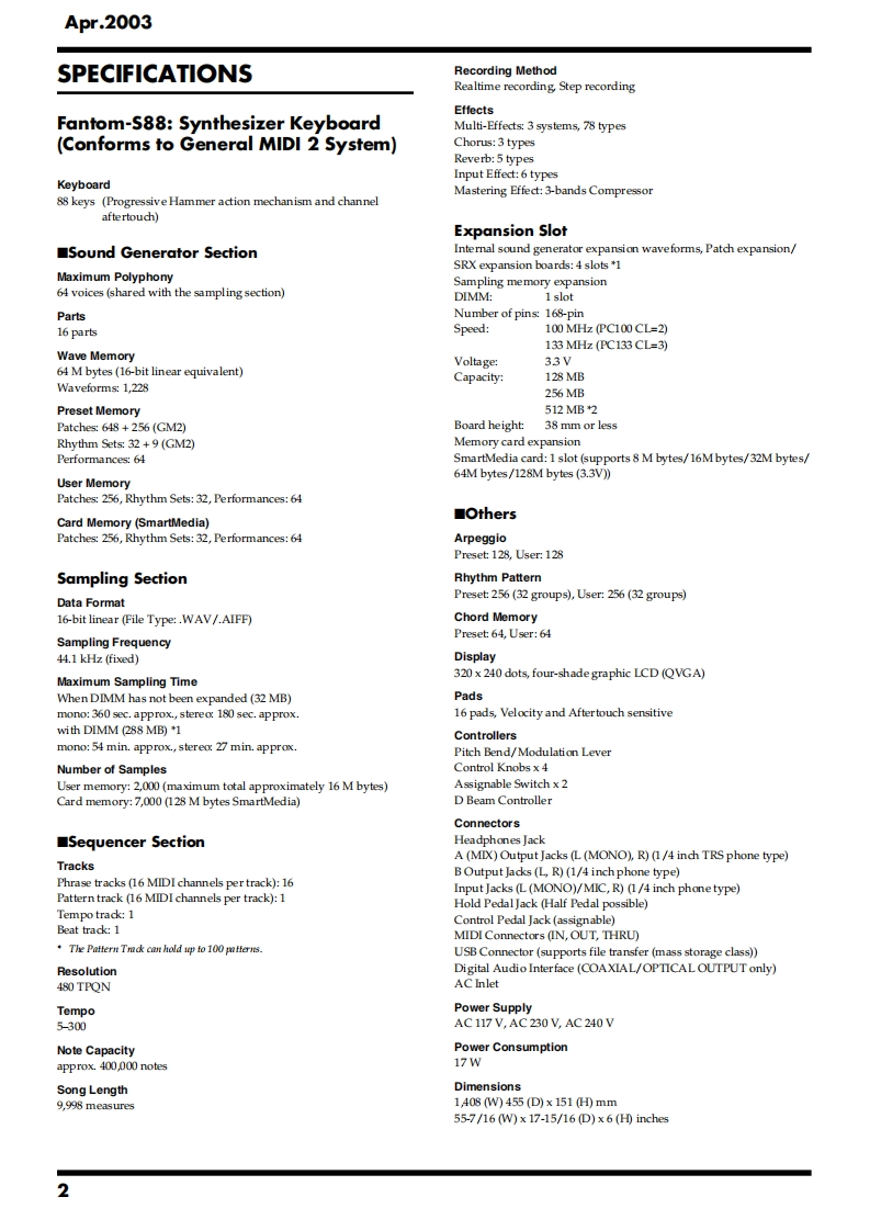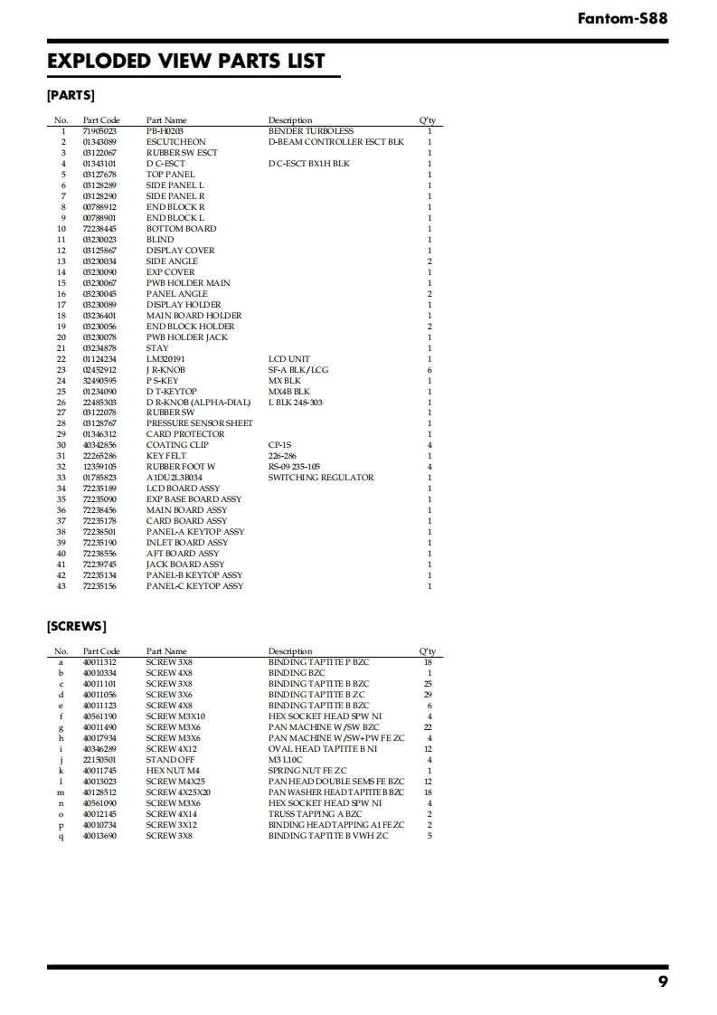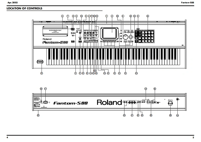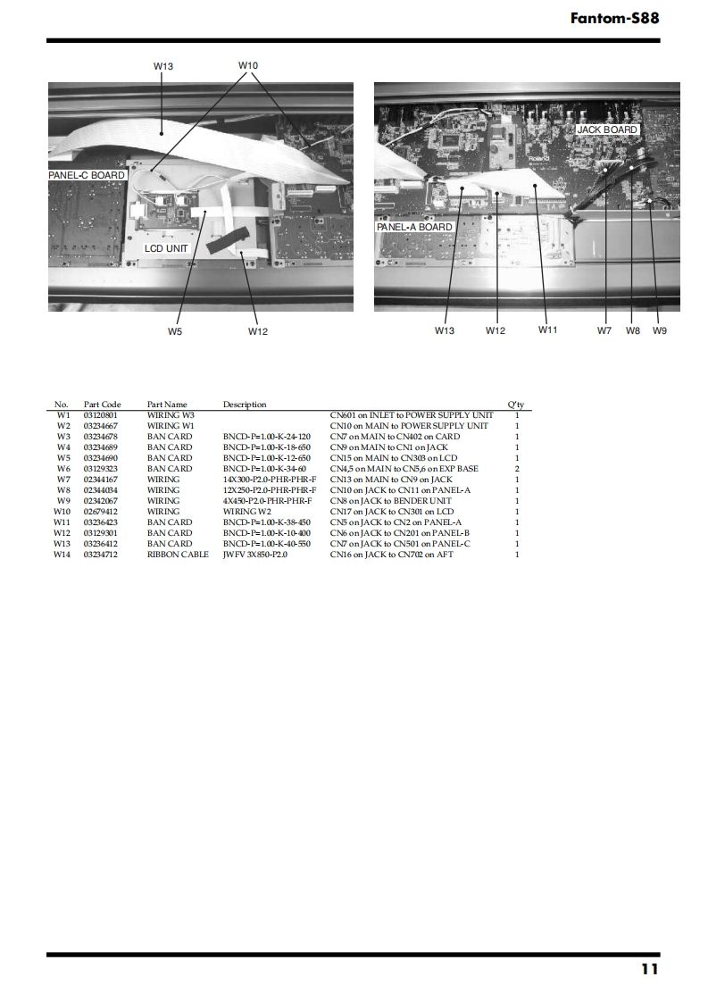 Apr.2003Fantom-S88SERVICE NOTESfantom-588Issued by RJATABLE OF CONTENTSSPECIFICATIONS......2CIRCUIT DIAGRAM(MAIN1).....38LOCATION OF CONTROLS.4.CIRCUIT DIAGRAM (MAIN2)..40LOCATION OF CONTROLS PARTS LIST................6CIRCUIT DIAGRAM(MAIN3)............42EXPLODED VIEW......8CIRCUIT DIAGRAM (MAIN4)..44EXPLODED VIEW PARTS LIST.........9CIRCUIT DIAGRAM (MAIN5)..........46WIRING DIAGRAM.........10CIRCUIT BOARD (JACK)......…48PARTS LIST.12CIRCUIT DIAGRAM (JACK-1)..................52CHECKING THE VERSION NUMBER....0CIRCUIT DIAGRAM (JACK-2).....54USERS DATA SAVE AND LOAD.......20CIRCUIT DIAGRAM (JACK-3).......5.6TESTMODE.21CIRCUIT DIAGRAM(PANEL-C).......................58RESTORING THE FACTORY SETTINGS......8CIRCUIT BOARD (PANEL)........60SYSTEM SOFTWARE UPDATE PROCEDURE ........28CIRCUIT DIAGRAM(PANEL-A/B).62KEYBOARD PARTS LIST............32CIRCUIT BOARD(EXP).....….64BLOCK DIAGRAM........34CIRCUIT DIAGRAM (EXP)................66CIRCUIT BOARD (MAIN).........36ERROR MESSAGES.686口66可RolandFantmr83Copyright 2003 ROLAND CORPORATIONAll rights reserved.No part of this publication may be reproduced in any form without the written permissionof ROLAND CORPORATION.Roland17058150E0Printed in Japan(0800)(NB)