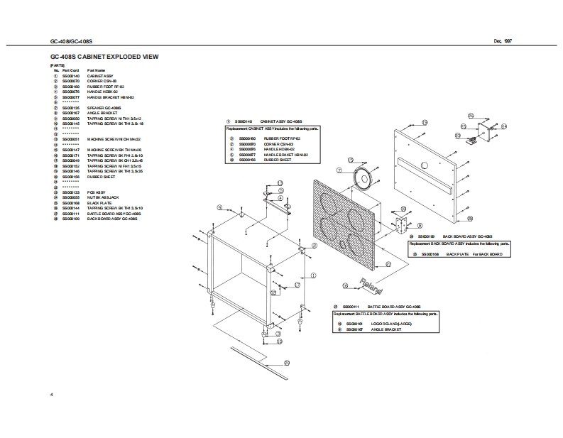 e190nGC-408/GC-408SGE·40B/GC·40BSSERVICE NOTESSPECIFICATIONSGC·T阳:GUITAR AMPURERFirst Editiong中GC·40s:SPEAK月DXIssued by RJA三S2kTABLE OF CONTENTSPageSPECIFCATIONSmaPANEL LAYOUTm2EXPLODEDVIEWctmedGC-408 CABINET号snwGC4029C妇NET*mCH品S88=mmmm室1eE山RWRING DIAGRAM-斜PT3LST*…112室TRCIRCUITBOARDCIRCUITDIAGRAM14进a。ou TVao/evdg0o高boo.,b5101IRoland蓝品awgratTo.8mCopy nght 1997 by ROLAND CORPORATIONA从ghts noervd Na pirtaf地p由calan may国nipraduoad in any bmmwihat he结rnpermbaian dfROLAND CORPORATONRoland 17059905