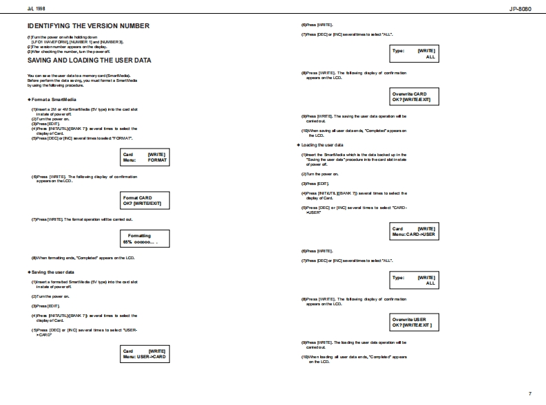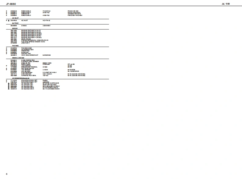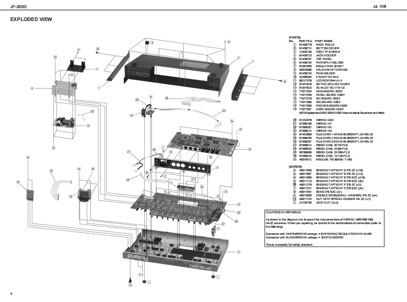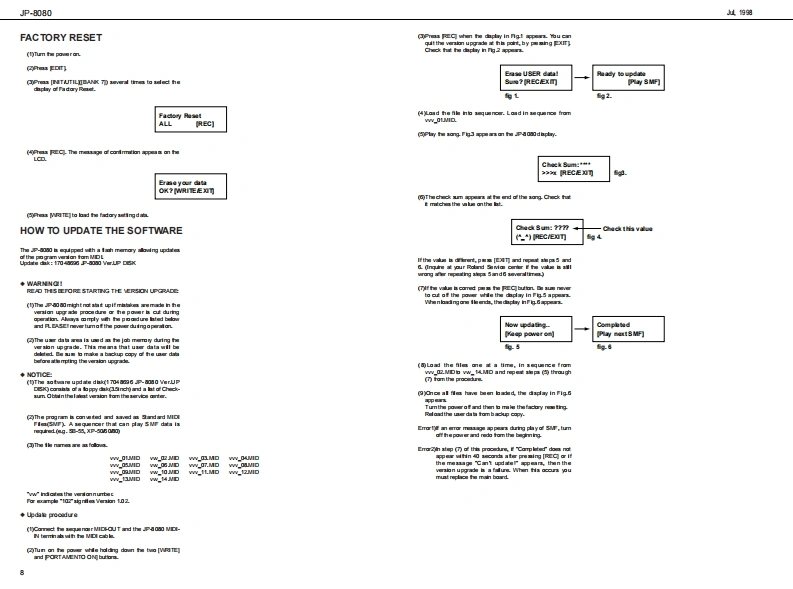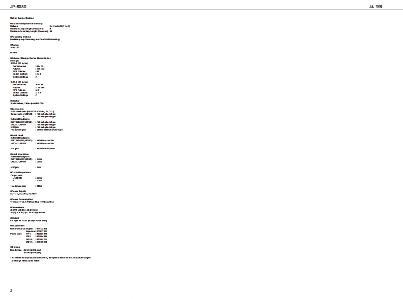山.1细JP-8080J尸-B▣B▣SERVICE NOTESSPECIFICATIONSSYNTHESIZE吊M▣▣ULEFirst EditionIssued by RJATABLE OF CONTENTSPageNIDENTIFYING THE VERSION NUMBER.-FACTORY RE生T=============================================8HWT0UP0 ATE THE S0 FTWARE==:========:==========:==:===8TEST00E===========ROR MESSAGE R0RM日ORY TEST================================126666666656后0可用画尚白三4学82n画尚西山色回口自川鲜e来绿高白中白白由白宫中兰范色6INa百古户字克中之鸟中中中从,TAT问13,g■气安1,m1,二2Copyright 1998 by ROLAND CORPORATIONAll righs neserved.No pat of this pub lca ton mybe re produad in any bmwi hou the writen pormisson ofROLANDCORPORATONRoland 17059936Pned in Japan (ACE0C角1