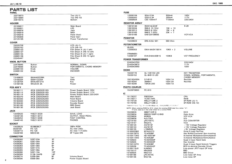 DEC.1985JU-1.HS-10JU-1/HS-1▣DISASSEMBLY PROCEDURES/分解手m(QJUNO-1)SERVICE NOTES”年来中中小快公·First EditionSPECIFICATIONS贺光情行.edeP呼KY的AHD特H,4cc线C出LFO4里0c8经y TIVE8OUTPUTPHONESTERCOAUDIC12 wittlEXPL▣DED VIEW/分解图DIMENSIONSHS-10FILM SHEET B建Y0L0w0-10n4011t的220351140,“205111面TOPNE220175L“22915594PHOTO:JU-14品e82aa34aTOP PANEL 1220156731,"1220156841r年f品5892e1-TCHSABO3A12610940W3三205A1142KEYROARDEY1T241104N6 NDER UNIT PR1家22259型中选甲行一男y◆PANEL HOLDERKtYB3AHDK-31得18320@12205t91e8amAYAC OORD山DE SMITCH21222%A11316433412KK2291144470AC INLET 3VJACK YKR21-6012124414☒14*24A0FR5MTD4w244434I1114100%985件FG0T47w112153650ET的月N多1上TAI6TNI9A0YK5218006I44325251RolandPrinted in Japan3·31