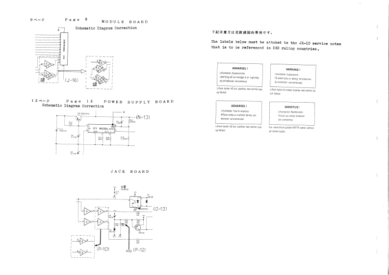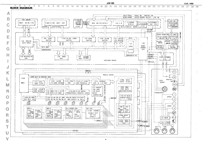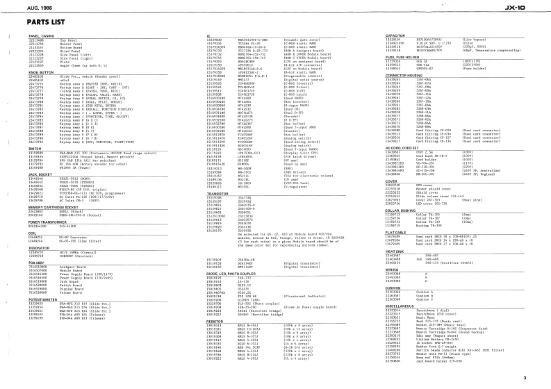AUG.1986JX-10SUPER JXJX-10SERVICE NOTESFirst EditionSPECIFICATIONSnt起时:花笔国461U话x44机13014▣回向回司回回古画a■同daHd到TaCornection Cord 2Verar Co用1W:0MCC x1Mamery Carridpe 50M-C4C IC.Smqatncer Cata玉4moing the app4时ory cartidge M-16C a邮4CIac月M 1C Aperem.400 notmM-64C:Apprea.1600 normNIDI Guide Bask"WICI"州=524mP0-8444414414441日Caelruige Jmei hary148aA州。4里,3411■311L4et.%想11541111特14HOLD PEDALOPF 9V ON 5VF44F12,t年PEDAL SWCFF :8V I ON W到满:元:特脚中1%184@,C2W-15w9)3471122213TABLE OF CONTINTS肉PB家EXPLODED VIEV本婴9s出PNsAPARTS LI8T1211212221DIAGRAM7和学5里,t28ta6200001CIRCUIT DESCRIPTION且生解银Side Panel (L.I711232291122211128TEST NODE天》无-7A551G%ER日OA2DT时从中惠适8-7CA别TRIDGE五OARD秀一上号学板MODULE BOAND毛=一品表短8-9343210m21ADJU8T时EyT程9414制VOLUME BOARD金明4一A系们1aSWITCH BOARD天(?中富横10-14bodDISPLAY BOARD甲天7k有蒂银10-11密品KEYROARD PCR健材高多根JACK BOARD少有y5事有12NONO JackPOWER SUPPLY BOARD龙温基程12P4251140J8100V117ZW0)5-012CM1g124791012gCN8x★职DIN Gocbe一黄T6月自⊥(12449140MIDIMIDt12=13TC836501-1111g1移114%111t142948C图ANG三1%TORMAT1OW复尼实内14RolandPrinted in Japan B8 21