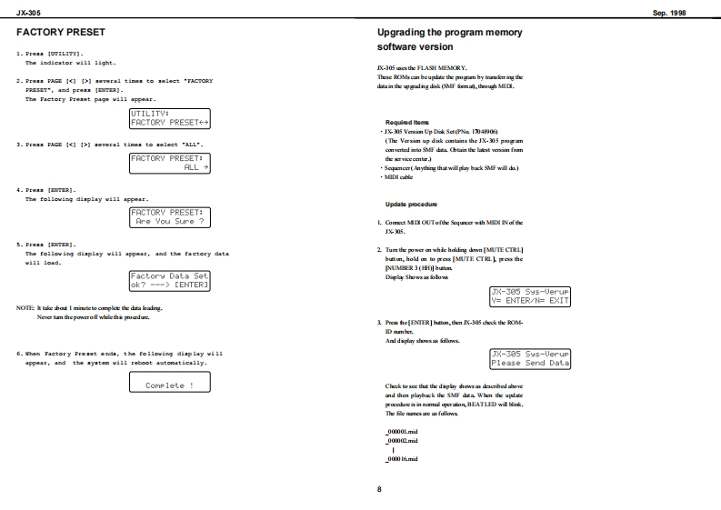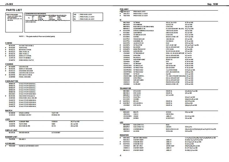 JX-305sep.1998JX-305SERVICE NOTESSPECIFICATIONSGROOVESYNTHFirst EditionJX-305:GROOVESYNTHIssued by RJAwTABLE OF CONTENTSPageSpedficalasePand layoutPand LayoitPurLhteli on-dn1打s3fskmE甲e过d起warsi址ldartilying the versian rumbir延如aving and lading uerd国打世下day poUpgrading he progammamary sofwara wrsianTamG超Keybaird pirts btKeybaird daso mly0u4hh与0ea内sm0n,日4折折3loek digamCreit board (MAN)a3道送Creitdagam GAL).21Cad维dmO_的Creutdagam (NTERFACE)23Creitboard0PNt且A动24h6ads加Creitdagam0P且A的Creuitboard0neE的BLEDCreitdagam0ne且的.27必要5““中“Copyright@1998 by ROLAND CORPORATION1Roland17059943Primed in Jap3nAA00D月1