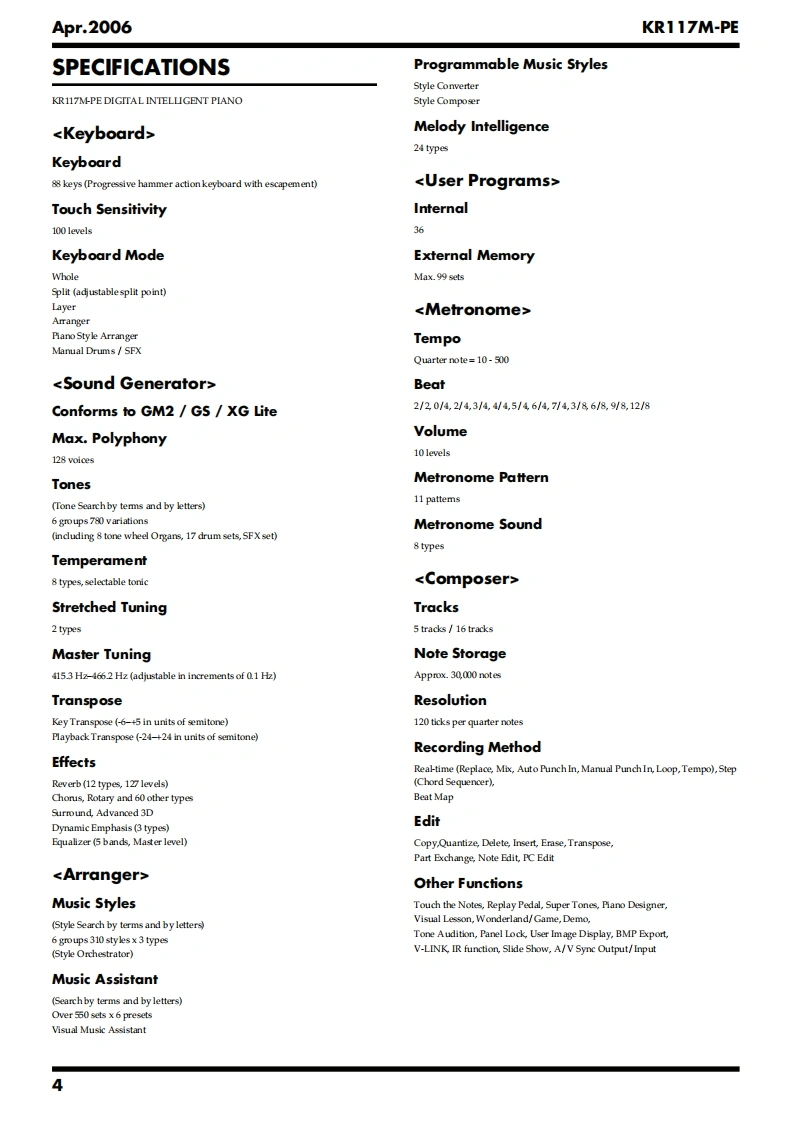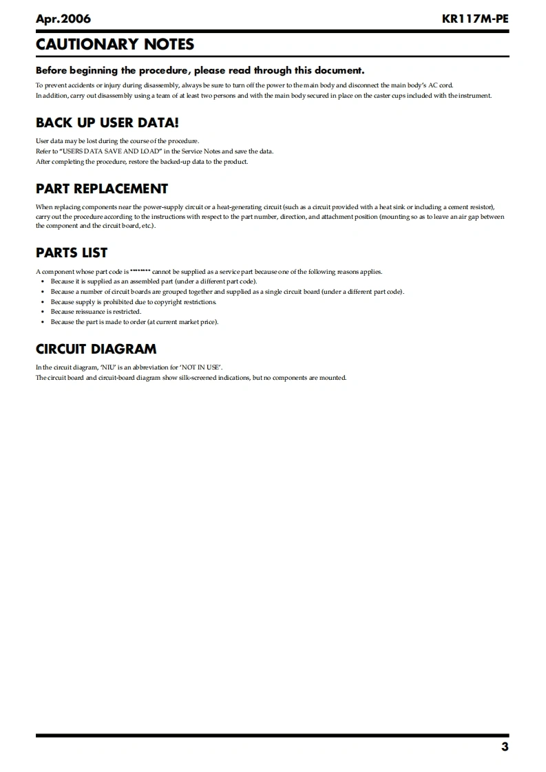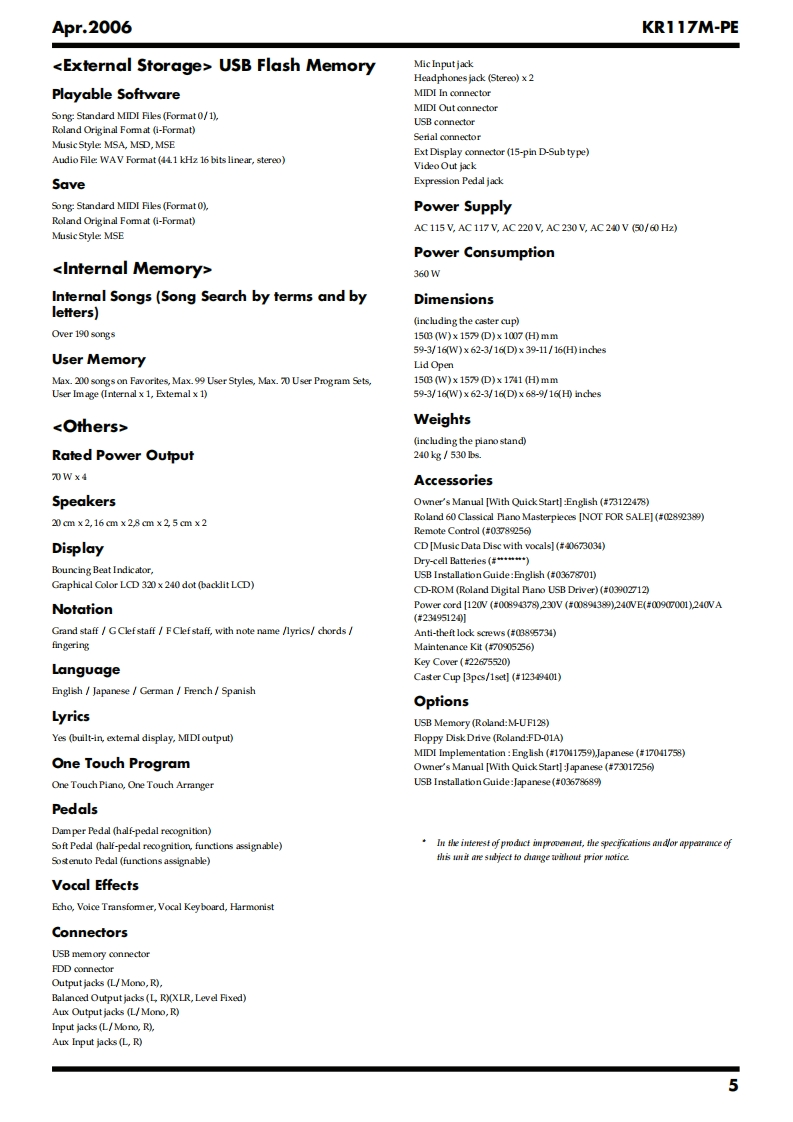 Apr.2006KR117M-PESERVICE NOTESKR11/M-PEIssued by RJADIGITAL INTELLIGENT PIANOCopyright 2006 ROLAND CORPORATIONAll rights reserved.No part of this publication may be reproduced in any form without the writtenpermission of ROLAND CORPORATION.Roland17058359E0Printed in Japan(0430)(TP-M)