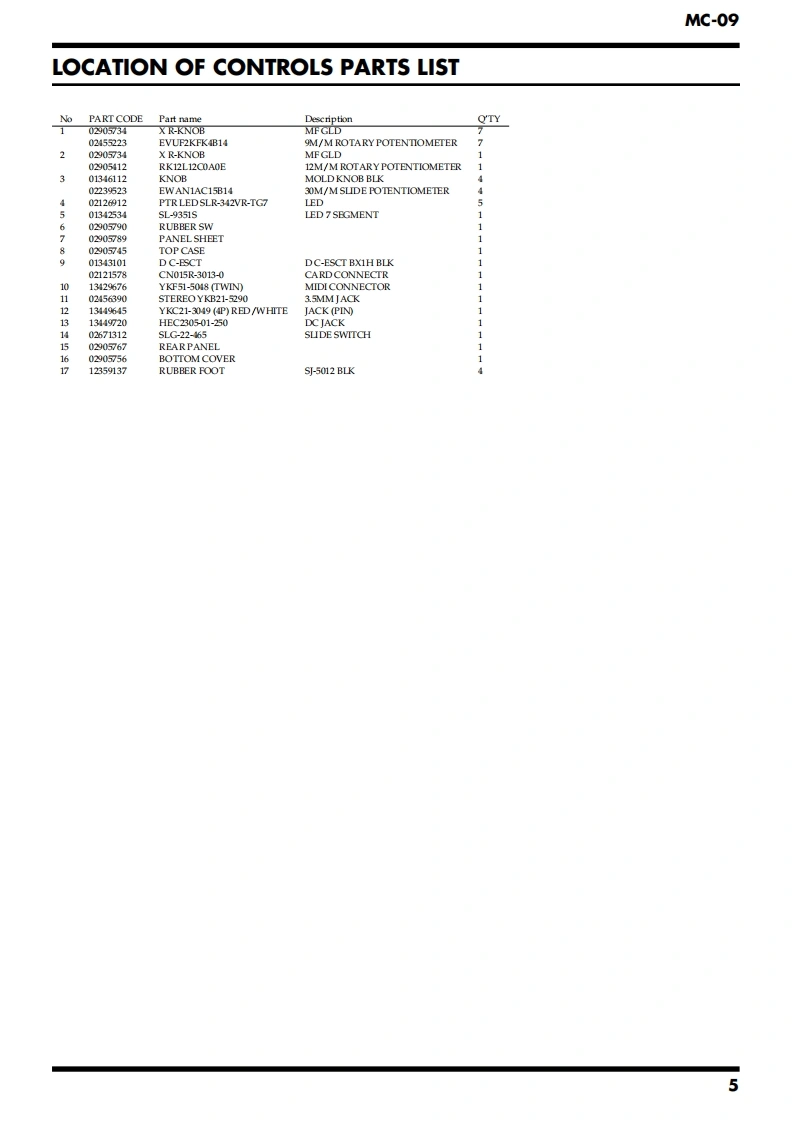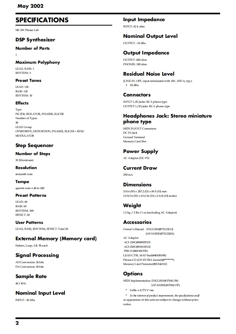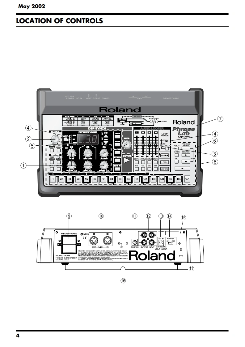 May 2002MC-09SERVICE NOTESMC-▣9PhraseIssued by RJALabSPECIFICATIONS.....2SYSTEM SOFTWARE UPDATE PROCEDURE............13LOCATION OF CONTROLS.TEST MODE......14LOCATION OF CONTROLS PARTS LIST.....5BLOCK DIAGRAM........16EXPLODED VIEW....6CIRCUIT BOARD(MAIN BOARD 1/2)....................18EXPLODED VIEW PARTS LIST............7CIRCUIT BOARD(MAIN BOARD 2/2)......420PARTS LIST8CIRCUIT DIAGRAM(MAIN BOARD 1/2).......CHECKING THE VERSION NUMBER.......12CIRCUIT DIAGRAM(MAIN BOARD 2/2).24USERS DATA SAVE AND LOAD(MEMORY CARD)..12ERROR MESSAGES.26USERS DATA SAVE AND LOAD(BULK DUMP)........12RESTORING THE FACTORY SETTINGS............13POWER DC IN INPUT OUTPUT PHONESMEMORY CARDRolandDSP SYNTHOUTPUTPhrasePATTERN/VALUELabMC-▣gKEY PADCopyright 2002 ROLAND CORPORATIONAll rights reserved.No part of this publication may be reproduced in any form without the written permissionof ROLAND CORPORATION.Roland17058085E0Printed in Japan(0800)(AS)