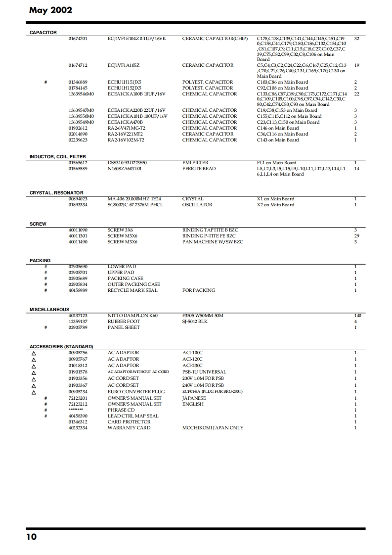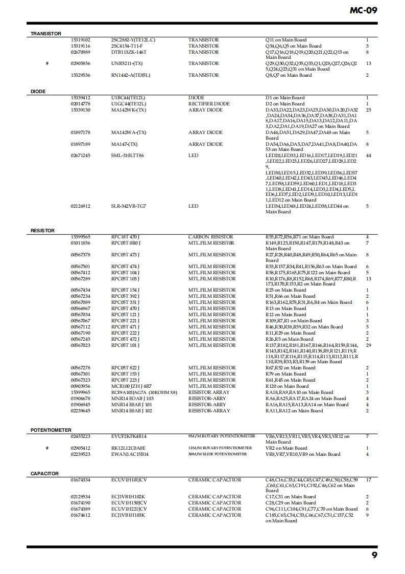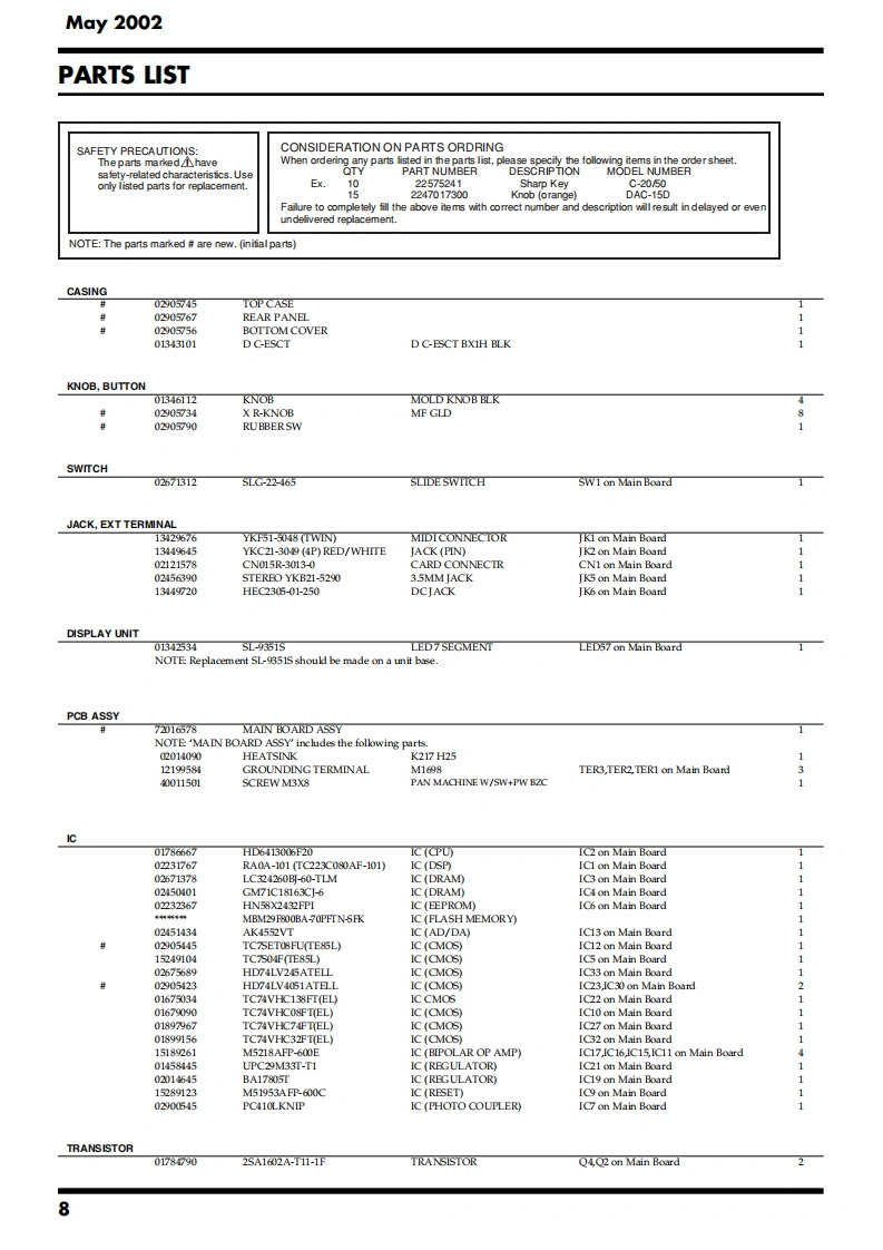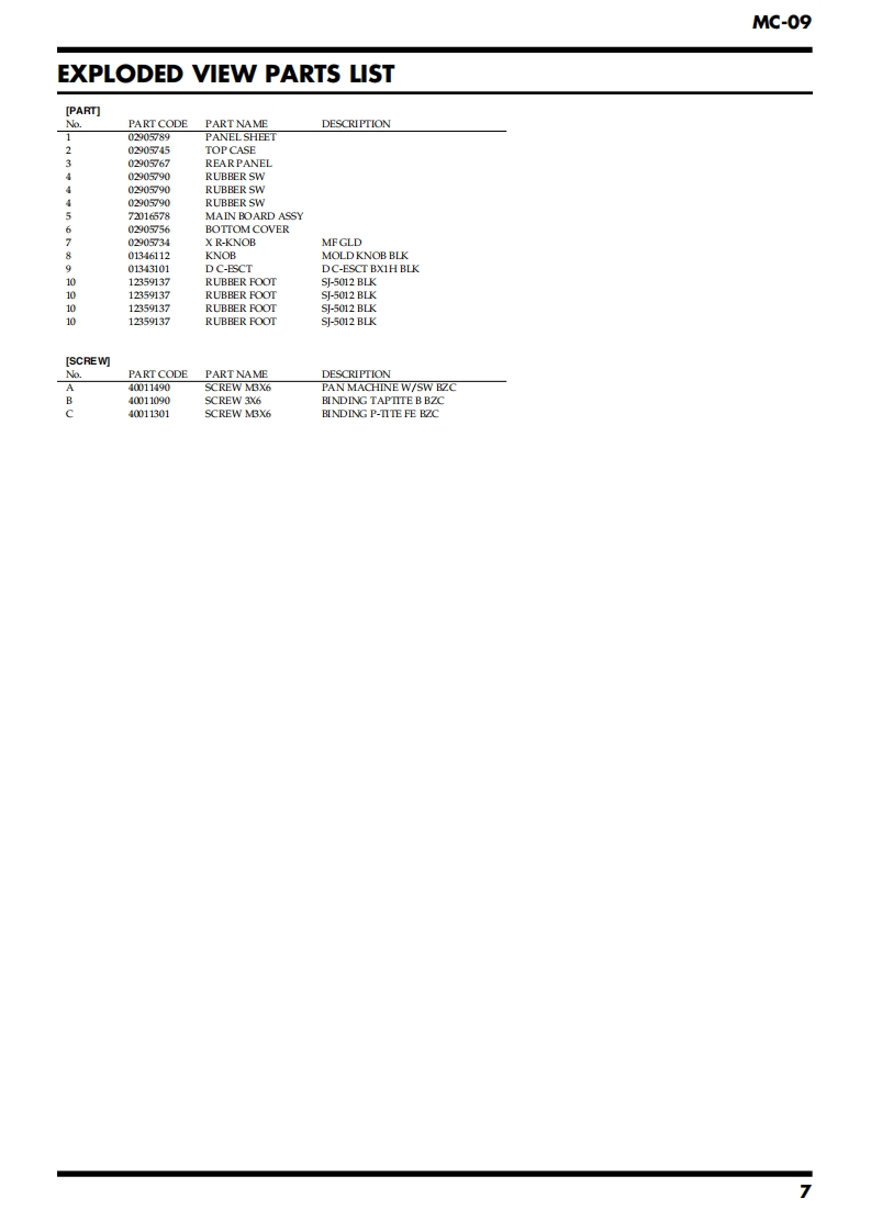 May 2002MC-09SERVICE NOTESMC-▣9PhraseIssued by RJALabSPECIFICATIONS.....2SYSTEM SOFTWARE UPDATE PROCEDURE............13LOCATION OF CONTROLS.TEST MODE......14LOCATION OF CONTROLS PARTS LIST.....5BLOCK DIAGRAM........16EXPLODED VIEW....6CIRCUIT BOARD(MAIN BOARD 1/2)....................18EXPLODED VIEW PARTS LIST............7CIRCUIT BOARD(MAIN BOARD 2/2)......420PARTS LIST8CIRCUIT DIAGRAM(MAIN BOARD 1/2).......CHECKING THE VERSION NUMBER.......12CIRCUIT DIAGRAM(MAIN BOARD 2/2).24USERS DATA SAVE AND LOAD(MEMORY CARD)..12ERROR MESSAGES.26USERS DATA SAVE AND LOAD(BULK DUMP)........12RESTORING THE FACTORY SETTINGS............13POWER DC IN INPUT OUTPUT PHONESMEMORY CARDRolandDSP SYNTHOUTPUTPhrasePATTERN/VALUELabMC-▣gKEY PADCopyright 2002 ROLAND CORPORATIONAll rights reserved.No part of this publication may be reproduced in any form without the written permissionof ROLAND CORPORATION.Roland17058085E0Printed in Japan(0800)(AS)
