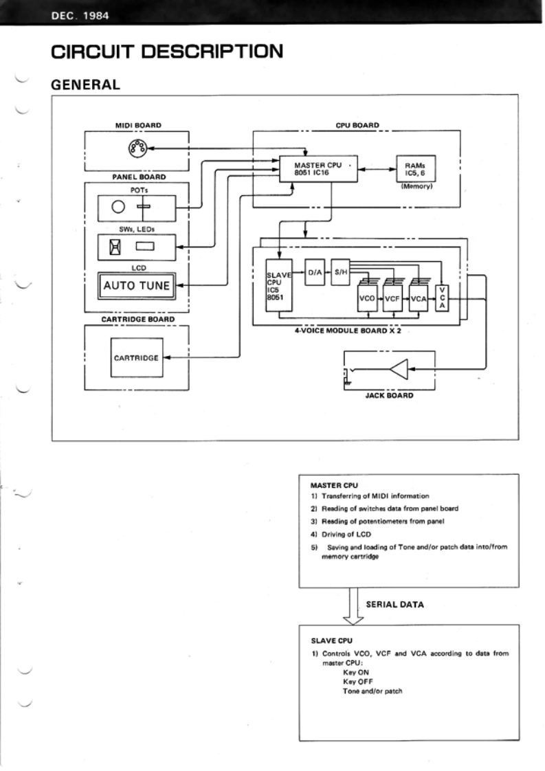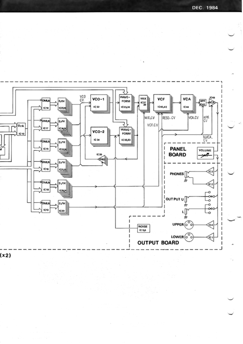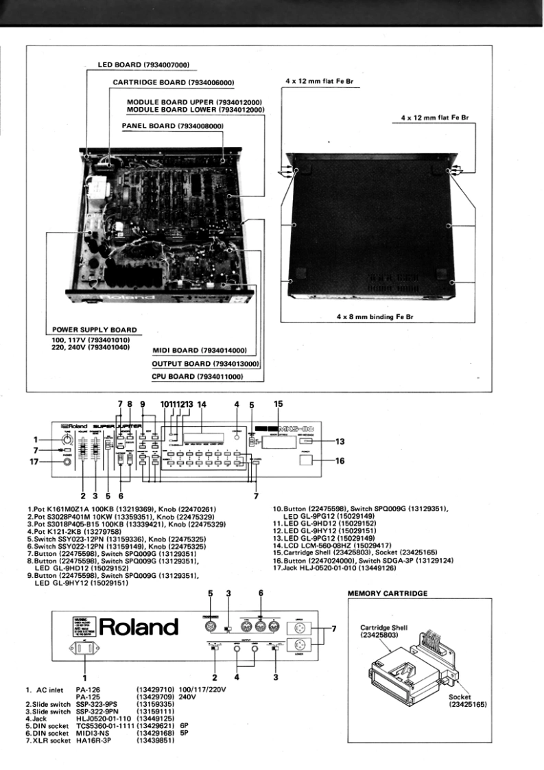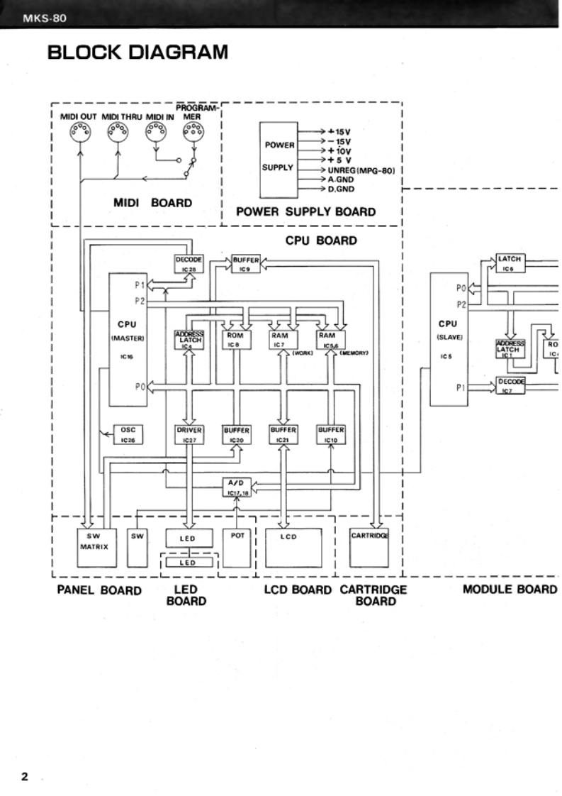 DEC.1984(1st Edition,1st Printing)MKS-80MKS-B0(from p.1 to p.34)SERVICE NOTESVPG-B▣Second Edition(from p.35 to p.44)April.1985Ks-B▣Part1This Notes makes First Edition obsolete and consists of two parts:Part 1 Previous First Edition................................................pp.1-28Part 2 SN.511800-UP New Module Board InformationChange Information .......................................................p.29New Module Board Assyp.30Circuit Diagram .........Pp.31-35Adjustment ............Pp.36-37New Parts Listp.37Bl0 ck Diagram,…p.38SPECIFICATIONSMASTER TUNE±50 centsLF0-1Rate 0.02-64HzVCO MODLFO 5 oct:ENV-1 4 oct (DynamicsRandom 0.06-250Hzmax)Delay Time 0-4sPWM50-0%AFTER TOUCHLFO-2 Rate 0.016-16Hz.VCF (LPF)24dB/octVCO sense more than 100 cent.Cutoff frequency 5Hz-30kHzVCF sense more than 6 octs max.ENV more than 10 octavesGLIDETime 0-1.6s/octLFOre than 5 octavesBENDERRange more than 2 octs Up/DownKey Follow 0-100%(Wide).(HPF)6dB/octRange more than 1 oct Up/DownVCAENV-2 Level 60dB maxLFO Modulation +30dB(Normal).maxOUTPUT1/4"phone jack 0/-15/-30dBENV-1Attack Time 32s max.XLR impedance 600 ohmsDecay Time 32s max.Headphones 8 ohms,stereoRelease Time 32s maxKey Follow -100%POWER CONSUMP35 wattsTIONENV-2Attack Time 32s max.DIMENSIONS430(Wx400(D)×88HmmDecay Time 32s max.Release Time 32s maxWEIGHTKey Follow 0-100%T0PC0VER(22025244)FRONT PANEL (22215418ANGLE(22125521)BOTTOM COVER (22025247)Rolandwww.ftg.co.ukPrinted in Japan B-3 1