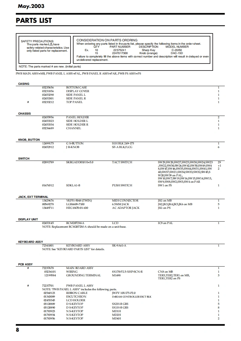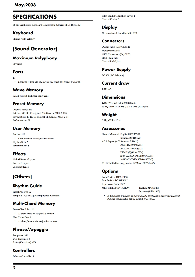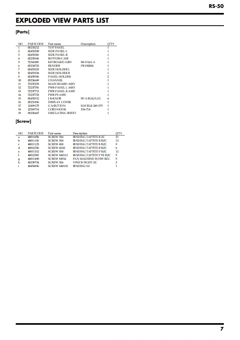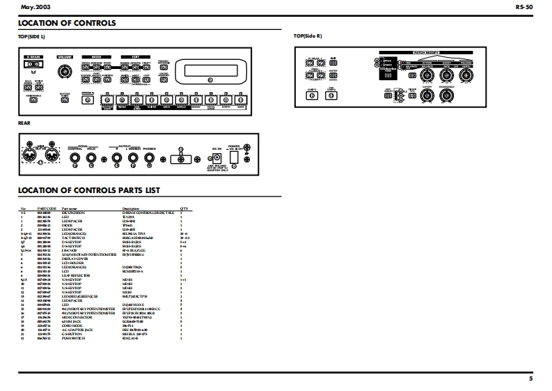 May.2003R5-50SERVICE NOTESR5-5IIssued by RJATABLE OF CONTENTSSPECIFICATIONS.......2KEYBOARD DISASSEMBLY.20LOCATION OF CONTROLS.4BLOCK DIAGRAM.24LOCATION OF CONTROLS PARTS LIST............CIRCUIT BOARD(Main Board)...........6EXPLODED VIEW….6CIRCUIT BOARD(Main Board)...8EXPLODED VIEW PARTS LIST...CIRCUIT DIAGRAM(Main1).................30PARTS LIST.......8CIRCUIT DIAGRAM(Main2).32CHECKING THE VERSION NUMBER.............13CIRCUIT DIAGRAM(Main3).................34SAVING AND LOADING DATA........13CIRCUIT DIAGRAM(Main4)....36TEST MODE.…l3CIRCUIT DIAGRAM(Main5)....38RESTORING THE FACTORY SETTINGS.................16CIRCUIT BOARD(PWB PANEL R ASSY/UPDATING THE SYSTEM.16PWB PANELL ASSY/PWB PS ASSY)...............40KEYBOARD PARTS LIST.....18CIRCUIT DIAGRAM(PWB PANEL R ASSY/KEYBOARD CIRCUIT BOARD..19PWB PANEL L ASSY/PWB PS ASSY)...........4KEYBOARD CIRCUIT DIAGRAM.....................19ERROR MESSAGES..........44Roland受R5-50告可品g3言目香面蜀古司迪鸟尚尚合E节面面Copyright 2003 ROLAND CORPORATIONAll rights reserved.No part of this publication may be reproduced in any form without the written permissionof ROLAND CORPORATION.Roland17058162E0Printed in Japan(0800)(AS)