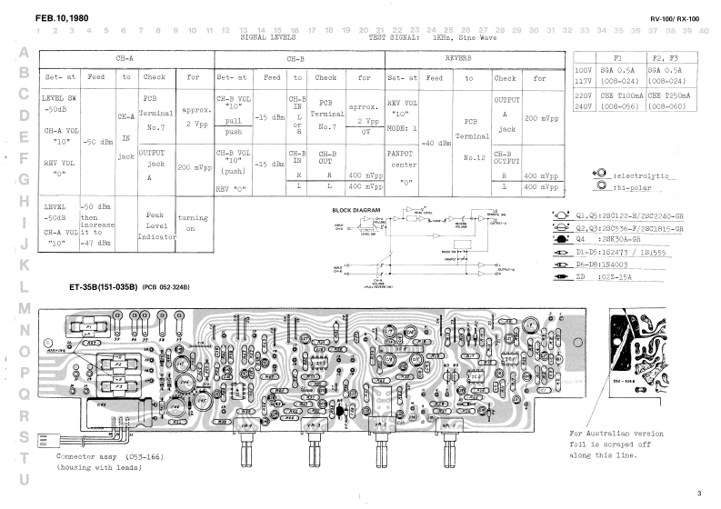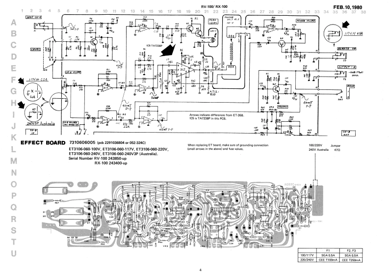 FEB.10,1980RV.100/RX-100RV-100/RX-100 SERVICE NOTESSecond EditionPARTS LISTWoV,7.19830SPECIFICATIONSParts repraeanted1 a nev code《8-10 diait》HthPOTENTIOMETERe14 for1121911402-4B1EVRAPAJ61854 OE EVHEPAP20856PART NO.OLD ND.Namre and depeription11219752D2E-401EWDCJP20854 oePanN35181300名5=158一1a1atmCover(case)H-B1222107942235010111l-l20OU-20212S91l1111=010ELECTROLYTIC CAPACITOR22100012-213RY-100 parel frentDnwm3写2221007L成-100paEe1Er8和t136391420032-10CEA0wI1■fd50W2221004012-214hs-polar了口1T笔n2241016906L-L62A136399310@32-154ECEA2SAR74,7f@25224011016043bs-polart of four)1238910040-003DISASSEMBLYP346L-91134402SEMICONDUCTORJACKRomgse four sorews (4 x Emm BHI on the bettom15125316017-01014491070e9=0238G-763078234-01512901100 nd1344960009-02915129117017-01425C1E41-F OY 25C224D-B15129102017-01728c516-F0r201B1-CR15129114】SWITCH151316的017-01628A州-n1018015143Pat.13119127091-0015-222(bk》7ower1501520s018-0225w0220511de2T1403diode111g1060e1-145LEDLED50230811de3元a51s35-200(1501520)IWKO冈P20e5411321214ar1315910J031-166r5-5500G《1501920T0)diodaSL13185LR1318018-01002Z-15A or(102811611029110162(15019560)o12192G2长作右PCBPOWER TRANSFORMER05zLSU19619n122470112Q78101610021450121C1027-086C24-121G1100/117w15025116019-013LF-1318214501740D22-0w4074-126D120/240W15185105020=057uPCASSIC15953020=028TA7200FI5 old15199511TAJ238FIC5 nevPCB2191016100051-307711666005OTHERS00291016060m032-12922150501420-01Leng nut31G5-TA7231P2224010a65-1tCover sllde wltehCop4b1v1h87-15(02-32】22020111065-191CoverSpecify Lire Veltage far obtaining21%101D105】-1thEortac车望r1 n vien arder1nR12199519012-00holdetHolder11e00rCord Strain relief 1-6301FUSE125410047-023Cor4e1野10a125591040-024SCA 0 5A midget 100/11791255950400-056GaT100Ar1m.229/20WSince th山parta1tdall used0回-060CET230Mse,329/140W4P rt and vhere1t1w12559504uned will help factory to f511 your order prampt-1y.Jack8080精tshSwitch13449107升58M02320Panel58M0220SP.2022 1blk11131610力NV-1C022210703升97441313012力nX-1C022210707)Sorews 14 pel2010120'ne reed to remeve for00(123501141744907川8eDs12270101川Rolandrinted in与pan AE2