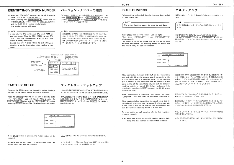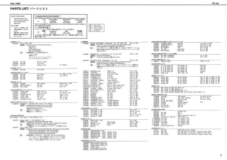 Dec.1993sc-50SOUNDCanvasSERVICE NOTESSPECIFICATION/仕樣MIDI SOUND GENERATOR SC-50First Edition●代4111i1i51515515111151151515111F1行115t:1得0G有线月aainan Pollpho明t44444t4i444t4:得g6TABLE OF CONTENTS目次Pagea样体O作当手■TVFC士eqn以同caSma3aErwelope (ssck.D年RhWSPECIFICATIONS仕持·小4小4小11111111111111WVCC4 PACITY111111115111111F1F=11111=1:售间3W2与的EXPLODED VIEW分娟回-………………2●33儿T444444444444444444444444:C妇mLCD0为25mm轴6cgt时8PARTS LIST《一以小又1111……3◆MPUTER INTERFACETEST MODEIDENTIFYING VERSION NUMBER《一岁3+才一0逍眼····…·8NPUTFACTORY SETUP77夕卜少-▣包y卜了y了…8BULK DUMPIC DATACn232.1=04的1BLOCK DIAGRAM回y夕☒……10wC,h1mNa234ss32制×1CIRCUIT COMPONENTSCIRCUIT BOARD DIAGRAM点Aa-0山14船1灯A的-11U14n数244#24的CIRCUIT DIAGRAM41-2214价数244等期5AG8-243Ek2553584AU-24】A6.244354aOvnar's Navan Sat x Iaf Cable83k4fa040s4hc的cta6e中店nocRS433 Jack-TG727-2*401Cord Hoo★SKrysp2240门342白1升2224514【rorl siew】[Raur viae]AART ATTUMSTRoland⊙■C■▣口MOCG▣▣正▣工▣▣o1 its19118888出▣▣SOLNO CanvasSC-40月1ak喻消Ap水4414YKFS1-50405写5124:07N-131-84F4a5-81-20124492TTD134两1315维9日0信34404Rdland17059730Printed in Japan AFIO (DP)1Copyrigl 193 by noLAND CORPORATON