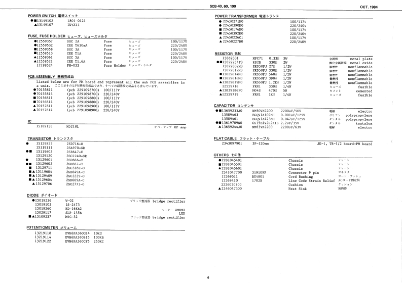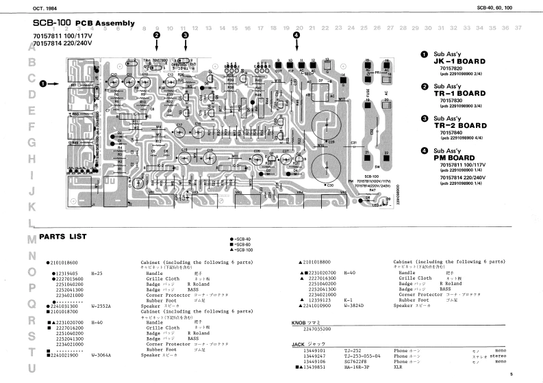 0CT.1984SC340.60.100S0B-40,60,100SERVICE NOTES网率明1-4EVHEFAJ00G14First Edition10x01321911SPECIFICATIONS少季3季C7022播5C8-40SCB-60c8100(1344们16wOutput40有IRT南IW100W (RMSISpeko260m×100 cm x 1到am×1BI-13dBm/B5kn2-23Bn330x0Line OutPowerCemumgtionSWIESVA为255VADimem的ra1810WO s 200H)x 14-MJIDI iW12k20b.70u16ka用h,4a24k52k.1562.PHOTO:SCB-100◆=5CB40■=SG800▲=SGB-30Fun Holder FH-033七3-工:◆4型G1z10242t004x2L6k▲224t04011225194286别●相细三一为●W2562A25331339BASS-0w2岁A的22520413091★938504C1244024开1】44】网11(1918RolandPrintod in Japan BE21