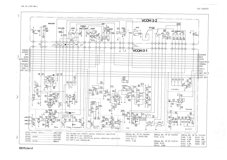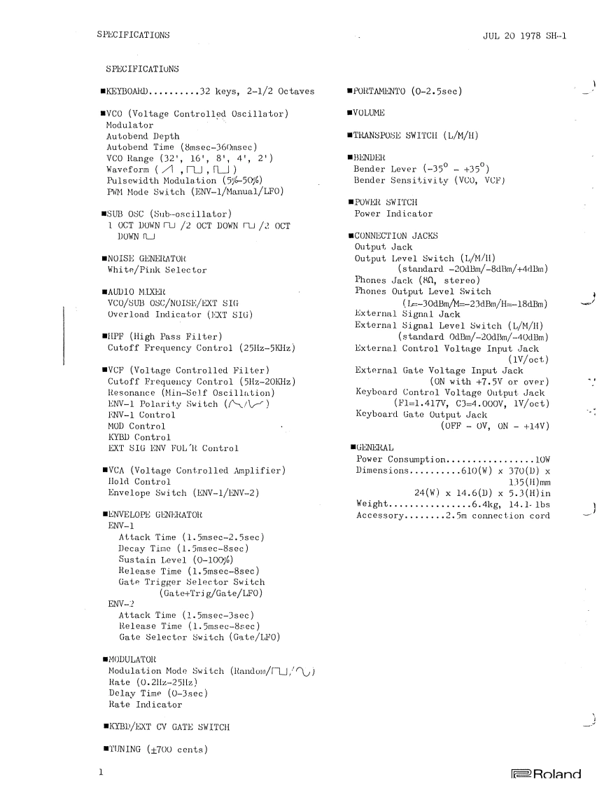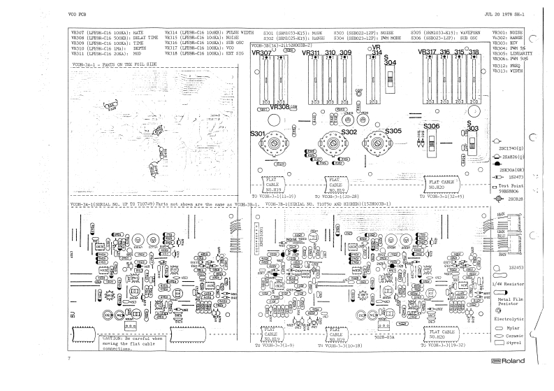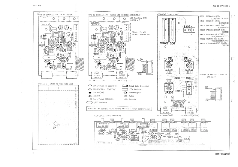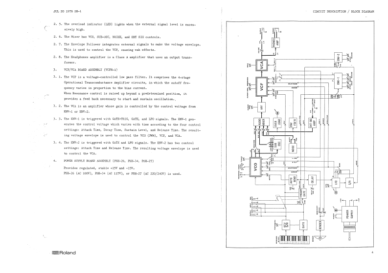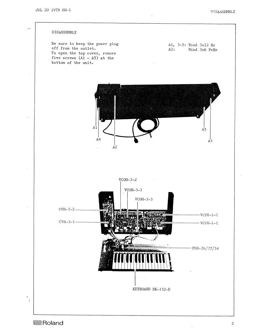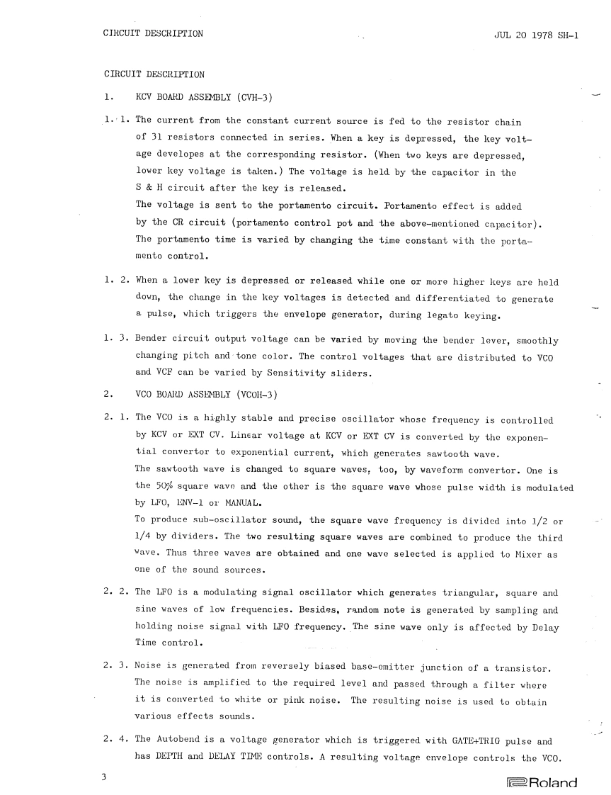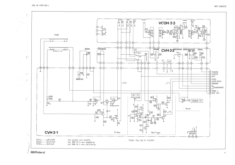 JUL201978SH-1SYNTHESIZERSH-1SERVICE NOTESCONTENTSSPECIFICATIONS,·1DISASSEMBLY2CIRCUIT DESCRIPTION3BLOCK DIAGRAM.…KCV PCB5KCV CIRCUIT6VC0PCB…7VCO CIRCUITVCF/VCA PCB...........9VCF/VCA CIRCUIT,。。。。。。。10P0 VER SUPPLY-PSH-26/27/34........ADJUSTMENT···12PARTS............17PARTS LIST…19KEYBOARD PARTSRoland