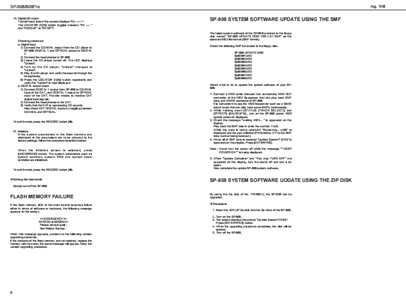 ug第aSP-808808Pr0S尸-日▣日SERVICE NOTESSPECIFICATIONSSP-日▣日ProFirst Edition白cavasamplaRIssued by RJATABLE OF CONTENTSPageSP-808/808PmoSPECIPCATONSLOCATION OF CONTROLS..-XP乳L00EDEW=========IDENTIFYINGVERSON NUMBER....CIRCUIT DIAGRAM BORADsP8080P1SPECIFICATIONS:=============================================8PARTS LS下===CIRCUIT DIAGRAM BOARD==*===-20-21d o凸a石培品品当白点Copyright 1998 by ROLAND CORPORATIONROLAND CORPORATIONRoland 17059930Prirted in Japan (AA00)(R)1