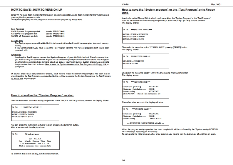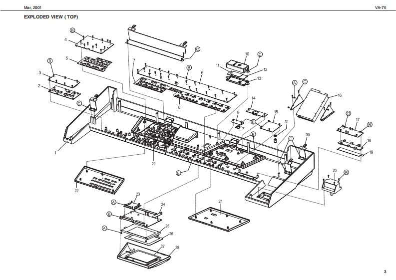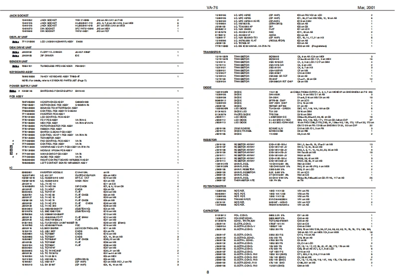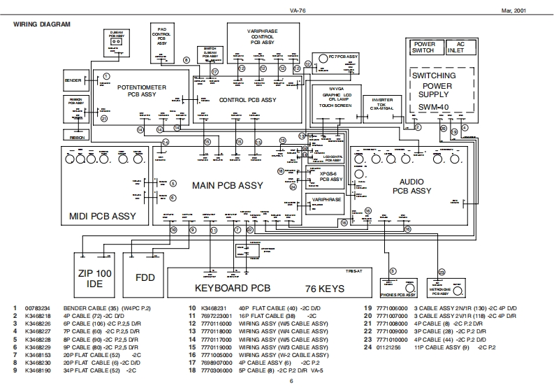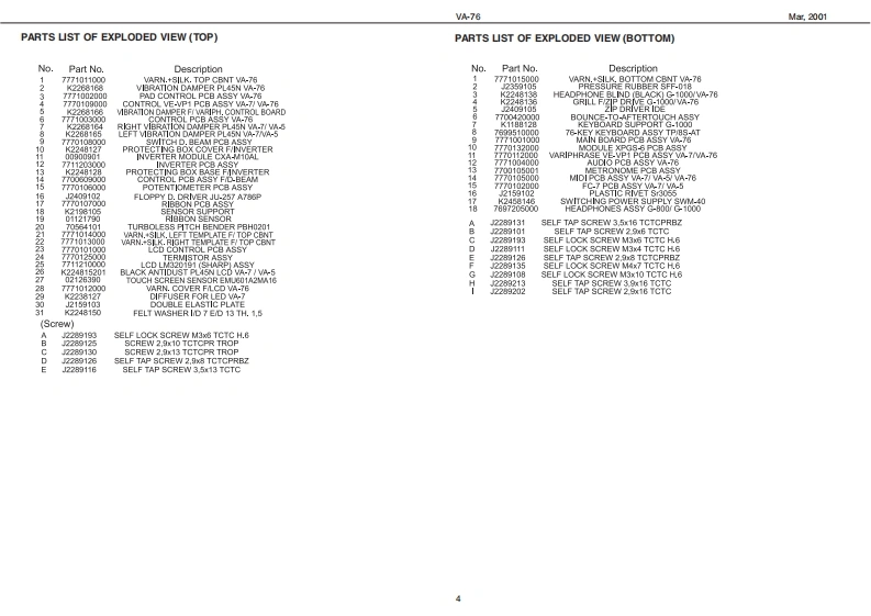 M里,2001VA-76VA-76SERVICE NOTESSpecificationsFirst editionW~ARRANGER KEY日▣AA▣Issued by RESknob,inob,M-FX knob (Vut-efect contrd)TABLE OF CONTENTSPagLOCAON OFCOTROS红L巴知EM0n⊙02344567ya,SMF-toStyle8然852号8938H心Y TO UPOATE THE VAR件AS线ROGRAM BY FLOPPY DEXTEST MOOECALBRATION PROCEDURE TO REPLACE THEMITCH BENDERAMNIN PCB ASSYuw ng Song HaderCRCUT DIGRAM OMAIN PO8ASS的CHGUIT DIAGRAM OMAIN PCB ASSYBem Cotrd包a/N PCBASSYKeyacan B均OC DE Cone oCONTO PCB ASSYOptiancPK-S DyPadl,FO-7FootC-7 PCB ASSY&CHCUT DIGRAMP九6dh0apo S FS-SUFoot E5平VE-VPI PCB ASSYACHT LEFT CONTACT PCB ASSY&CHCUT DIAGRAMDISASSEMBLY111月DOTTOM CAONET ASSY REMOML SCREWCopyright 2001 by ROLAND CORPORATIONRolandSN00046K0018433Printed in ltaly (100)(AD)