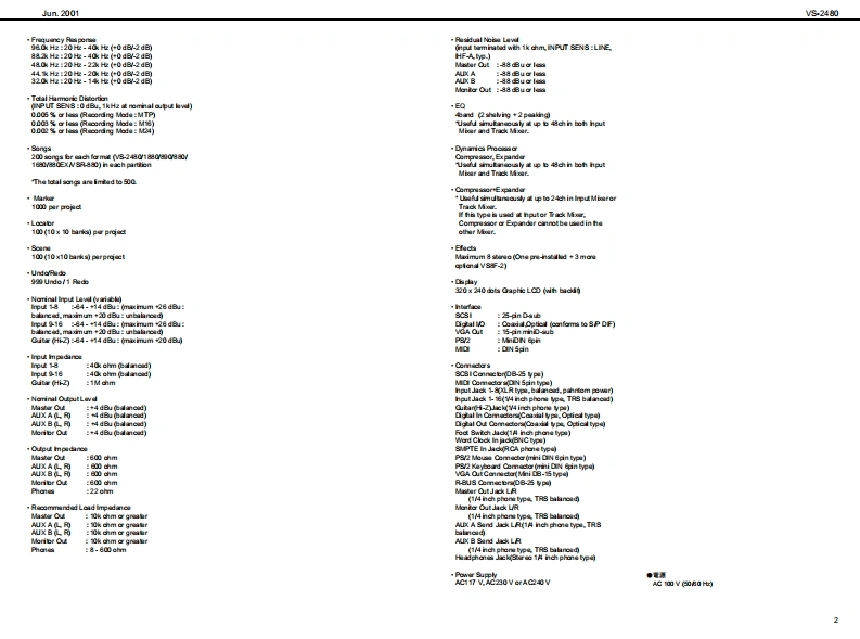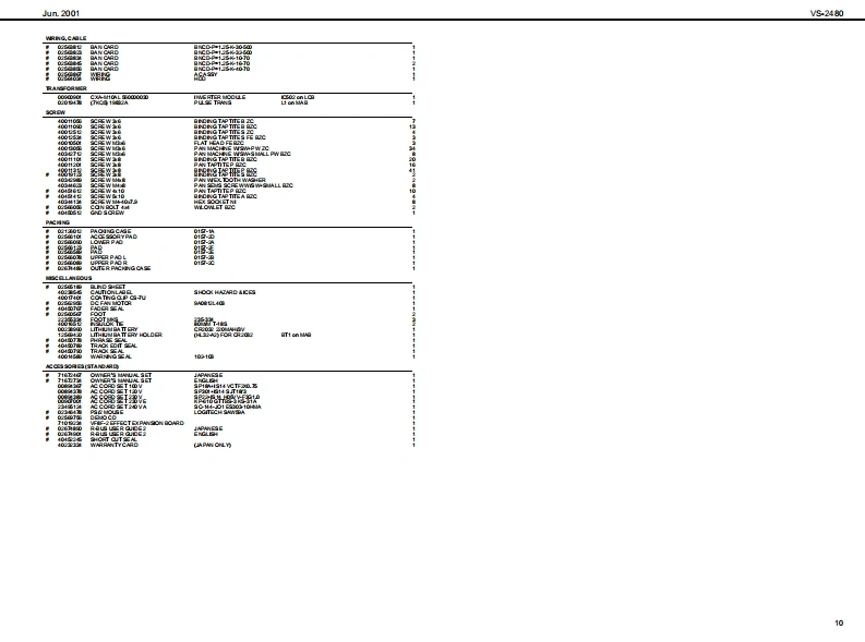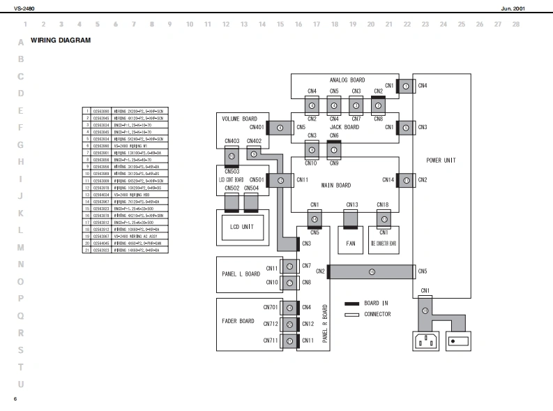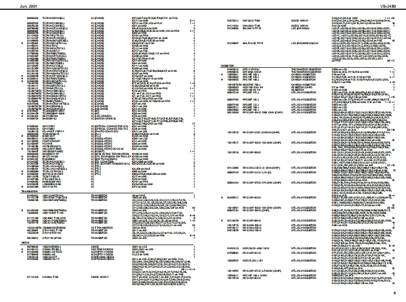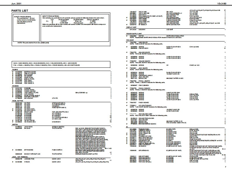 Jun.2001VS240Vs2AB▣SERVICE NOTESSPECIFICATIONSV8-2480:24T,24位9关t8elne0 gtl SudicnFirst EditionWarks lticn,TrdaIssued by RJAV-Trada384(1VTada per ech Track)"STee风eTABLE OF CONTENTSPage080k/8/840k/4a0/44.k/320k起SPECFICATIONS_LOCATION OF CONTROLS.“AdwM甘aranga wih vari-dth fndiaEXPLODEDVIEW.200kH江-经D0H2性关kH均WIRING DIAGRAM2200kH起-000H起M4超k封7-10IDENTIFYING VERSION NUVBER1"风ecarding ModeSAVING SYSTEM PARANETERSTEST MODE_11-13SETTING THE NTERNAL CLOCK..13PROCEDURE FOR UFDATNG THE SOFTWARE.CDWiing(ao间SAVING DATA N AN EXTERNAL SCSIDEVICE....1516RELOADING DATA FROM AN EXTERNAL SCSIDEVICE.......16.17Mutiraek 2M)日LOCKDIAGRAM1819Li 1L)CIRCUIT BOARD MAIN BOARD2021Li 2(LV2)CIRCUIT DIAGRAM MAIN BOARD.CIRCUIT BOARD ANALOG BOARD.3132Madmum Siutaneous Recerding /Playeack TradeCIRCUIT DIAGRAM ANALOG BOARD.33-35CIRCUIT BOARD JACKBOARD.3738CIRCUIT DIAG咒M JACK BOARD39-422e9CIR CUIT BOARD FADER/PANEL L BOARD16t.Ree 24 t.Pay (MTP MT12,LN.LV2)CIRCUIT DIAGRAM FADER/PANEL L BOARD.4545CIRCUIT B如DPAN但R BOARD4748sTee风a量988a25kH起CIROUIT DIAGRAM PANE R BOARD49.508 F.Rae/8 F.Ply (24M16CDR)CIRCUIT BOARD LCD CONT BOARD.518 t.Rue/12t.PLy (MTPMT12LNLV2)CIRCUIT DIAGRAM LCD CONT BOARD5253+Dupanding an the girizaiondf鱼ag幽量口back may be imited.10@0y室100yc年d5)x13P省a)x80域0isRe话eit日口白白g66日mnda约Recodng Meda Sampl Rat死H2能hH肛64hH24数H144.1hH2MH起M2491,341,44211NTP 1.9921652第33.97T4,35%6M16108214011,e92.16523绝8CDR108214911,02,1652绝3NT11.e9绝38.T4.3的5%6口四问电2,6530765.15LM818的346经4JT26,数6,554LV23,9TT45%61,112+The abewba ld ncording宝rnw当w年prexmabaTim may ba好uyd年ndng an th雄架fonsd he di味增世on thi numrbarolCopyright @2001 ROLAND CORPORATIONIn"COR reording medu,twe tradke are alwayAl rights reserved.No part d this publication may be reproduced in any fom without he wrten pemmis son ofROLAND CORPORATIONRoland17059080Printed in Japan 900忙网1