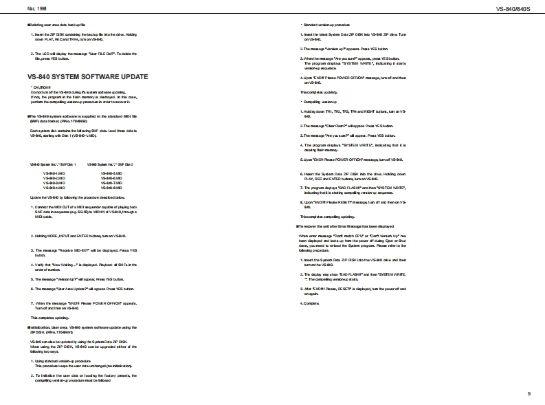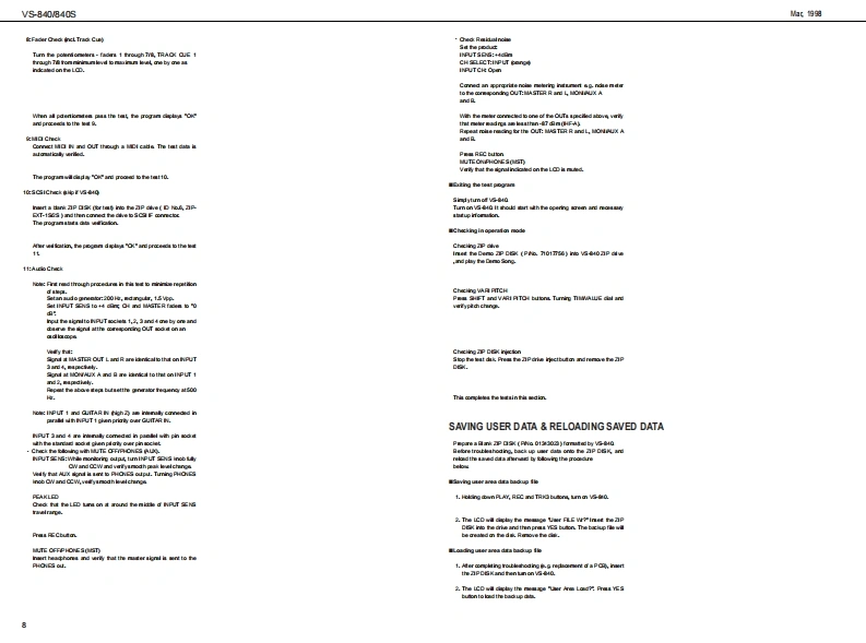 他.塑VS-840V840SVS-B4▣/B4▣sSERVICE NOTESSPECIFICATIONSG WORKSTATIONFirst EditionIssued by RJA出年TABLE OF CONTENTSPage高点脑温出花学云中以0 CK DIAGRAM================密wDENTIFYING THE VERSION NUM但ER:==================:================7名增出EST00E=============================================一79VS-840 SYSTEM SOFTWARE UPDATE“USING THE SMF.SA/ING USERAREACIRCUIT DIAGRAM0AD=====================================10-15閨SPECIRCATIONS (VS4S-1)STALLING THE VS4S.1)=============孩法型一由CIRCUIT DIAGRAM&0 ARD (VSIS1)================================18.19变兰一专“出士密=u奇空法我山wh白△gon图皆品。o10o1olg庄66666回同雨回回向“密品一步出Copyrig ht 1998 by ROLAND CORPORATIONROLAND CORPORATIONRoland 17059909Prirted in Japan (A000)(CR)