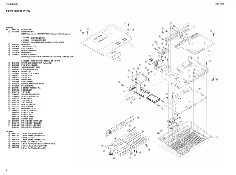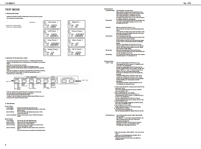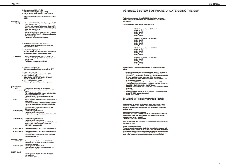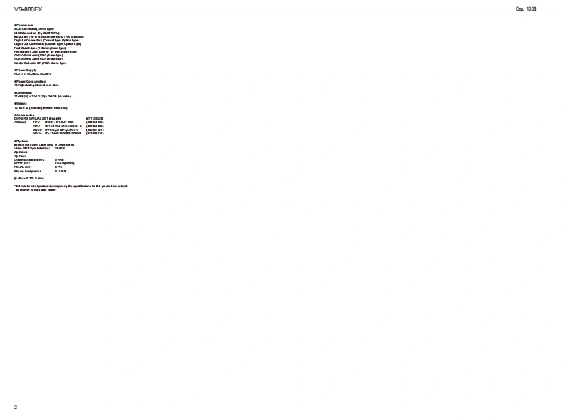 全具的自VS-880EXVS-880EX SERVICE NOTESSPECIFICATIONSV■a区0 M tote M NFirst EditionDIGTAL STUDIO WORKSTATIONIssued by RJA,中ehs6 phpad BAA sm.Ea OA非.TABLE OF CONTENTSPageBSPEC月CTNS====================低m44o&e以0 CK DIAGRAM================aIDENTIFYING THE VERSION NUMBER-LVSg3S5EMS亦NEUP0灯AU均N8TEF=========================“====9SAMING SYSTEM PARAMETERSaarMAIN BOARD REPLACING PROCEDURE-CIRCUIT DIAGRAM BOARD国Ew墨M地(四学四写codNMA2aaw1啡LBAFU441地3进地ndoo白6玉品a合巴回白回回中Copyright 1998 by ROLAND CORPORATIONAll righs neserved.No pat of this pub lca ton mybe re produad in any bmwi hou the writen pormisson ofROLANDCORPORATONm四国Roland 17059933Printed in Japan00c角1