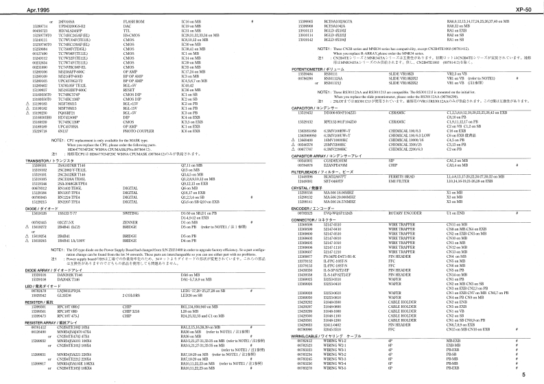 Apr,1995XP-50×尸-5▣SERVICE NOTESSPECIFICATIONS/仕樣y》3JSIC W▣KSTATI▣JFirst EditionC0UN2GBEn4ngNI度话年D5系/于11夕-=时3动●银UVe用C球efr-卜南-11ltreDLtofgr垂MPQ线P4松r)后式属韩侵惠色e地/7-?tTABLE OF CONTENTS目次PageGENERAL VIEW根银回4a44444444444a:1m/3-3SPECIFICATIONS仕择ONORY CAPWOITY/&EU-容量LOCATION OF CONTROL了ネ儿配☒4412事W呢3利=-…-==一18相r(P(xL一1国XD如EXPLODED VIEW分解回中NM5eMM地P8料/主岁入UC夕a>一F判离V/堂Dr4w学季f1tPARTS UST厂=入下4ti1a1t11i11ti1时11i1i4中物中物T中””1物:科:s.几UKEYBOARD PARTS LIST"6◆NTr-人==开时HEADPHONE 1CMRAw属Tk2KEYBOARD DISASSEMBLY信星分解手箱41411511:7一C术/程墙子INDENTYFYING THE VERSION NUMBERUSER DATA SAVE AND LOAD工==于=夕0七=ブ化口口尺国10FACTORY PRESET学夕卜-列七y卜方法111110AVERSION UP THE FLASH ROM7与yュ0MDバ=于日下?ブD方法…10frel B有4●44T表里+44TEST MODEPexctDOGM 13s●0C0调E8/厘室属色=+:=sEV)=%5o0onHOW TO ENTER THE TEST MODE入卜毛-FA0入列方5111111目11555151511511命K0d日1解gP周HOW TO EXIT THE TEST MODE下办与①的针静飞垂HT制号不△包g-:NA4。4nwBLOCK DIAGRAMy夕同兴代P年单1期有非年球单年年年数无有手无卡彩手诗得无学卡卡无有有无卡无学】了CIACUIT BOARD IMAINI基板团MAMDCIRCUIT DIAGRAM (MAINI国路☒MAMa41aamt19一2刻CIRCUIT BOARD IEXP)CIRCUIT DIAGRAM (EXP路区EXPCIRCUIT BOARD (SIDE PANEL,ENCODER)基题区SIDE PANEL,ENCODER用/7k-才+9◆r9XwP?问e由1/家=卡停y71s年n款3大,CIRCUIT DIAGRAM (SIDE PANEL,ENCODERI路区SIDE PANEL,ENCODERI22地■1T中售y法YMLAUEIDeCIRCUIT BOARD (SWITCHOdk】了一》9g号1M=对F人四CIRCUIT DIAGRAM (SWITCHI四路◆MEN4ME有f之室-于a毛)-aral2线组V13CIRCUIT BOARD (PS.TRANSICIRCUIT DIAGRAM IPS.TRANSY可路似PS.TRANS)CHANGE INFORMATIONGENERAL VIEW/概觀☒Daplay Cavr DF-Kse L SLK 24-39】79501-9010(184轮4001=450235F52700HeRoland s愧T的4LJ7101-0130S DLKLCGH00/,2Vand240W02244L30 JH00C0664101Roland170659789Printed in Japan AFFD (DP]1