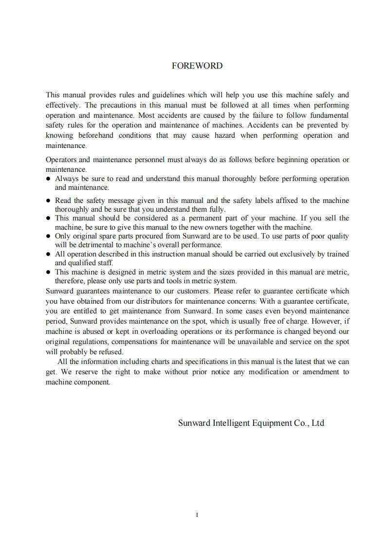 山河智能挖掘机Sunward-SWE20F-Excavator-Operators-Manual-PDF操作与维修手册含电器液压原理图找手册网3小时前发布关注私信2.58MB104页022山河智能挖掘机Sunward-SWE20F-Excavator-Operators-Manual-PDF操作与维修手册含电器液压原理图此内容为付费资源,请付费后查看¥39¥49黄金会员免费钻石会员免费登录购买付费资源 第1页 / 共104页 第2页 / 共104页 第3页 / 共104页 第4页 / 共104页 第5页 / 共104页 第6页 / 共104页 第7页 / 共104页 第8页 / 共104页 第9页 / 共104页 第10页 / 共104页 试读已结束,还剩94页,您可下载完整版后进行离线阅读 THE END中联重科/山河智能/Doosan/BT 文本预览 Operation MaintenanceManualSWE20FHydraul ic ExcavatorSUNWARD INTELLIGENT EQUIPMENT CO.,LTD.Sunward Intelligent Industrial Park,Xingsha,Changsha,ChinaSept.2019 查看更多 收起部分 喜欢就支持一下吧收藏