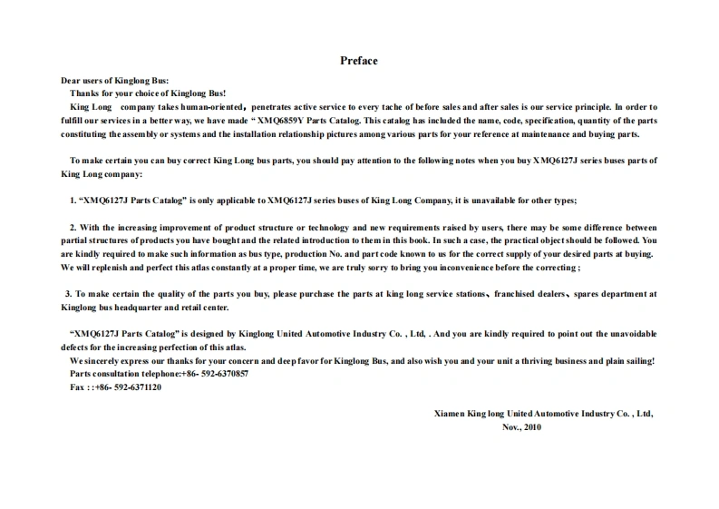 金龙客车king-long-xmq6127j零部件备件目录手册图册找手册网7小时前发布关注私信4.82MB324页045金龙客车king-long-xmq6127j零部件备件目录手册图册此内容为付费资源,请付费后查看¥39¥49黄金会员免费钻石会员免费登录购买付费资源 第1页 / 共324页 第2页 / 共324页 第3页 / 共324页 第4页 / 共324页 第5页 / 共324页 第6页 / 共324页 第7页 / 共324页 第8页 / 共324页 第9页 / 共324页 第10页 / 共324页 试读已结束,还剩314页,您可下载完整版后进行离线阅读 THE END陕汽/金龙 文本预览 KING LONGXMO6127J PARTS CATALOGUE(Malta)Series No.AB500002XIAMEN KINGLONG UNITED AUTOMOTIVE INDUSTRY CO..LTD.Nov.,2010 CHINA 查看更多 收起部分 喜欢就支持一下吧收藏