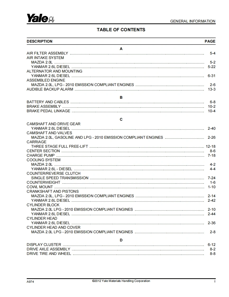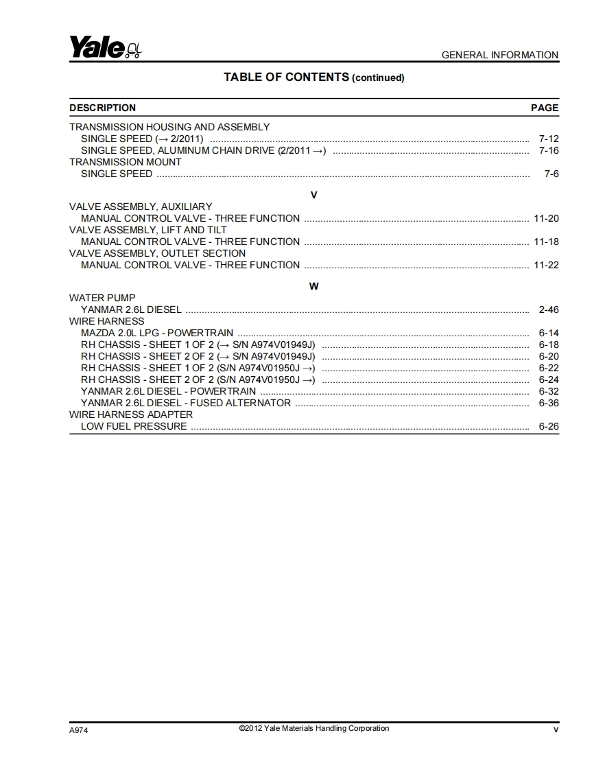 Yale-Forklift-GLP050LX–GDP50LX(A974)-Parts-Manual找手册网3小时前发布关注私信7.38MB340页042Yale-Forklift-GLP050LX–GDP50LX(A974)-Parts-Manual此内容为付费资源,请付费后查看¥39¥41黄金会员免费钻石会员免费登录购买付费资源 第1页 / 共340页 第2页 / 共340页 第3页 / 共340页 第4页 / 共340页 第5页 / 共340页 第6页 / 共340页 第7页 / 共340页 第8页 / 共340页 第9页 / 共340页 第10页 / 共340页 试读已结束,还剩330页,您可下载完整版后进行离线阅读 THE END徐工/玉柴/Nifty/TCM/YALE 文本预览 YaleaPARTS MANUALGLP050LX,GDP50LX(A974)gR@@YalesYale Materials Handling Corporation5500139681400 Sullivan DriveYale Corp.Caller No.1201101/2012Greenville.NC 27834-2011 查看更多 收起部分 喜欢就支持一下吧收藏