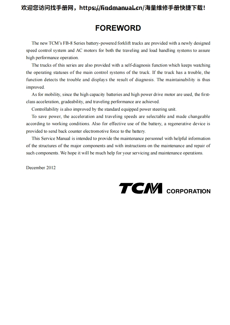 TCM叉车-FB1O-8_FB15-8_FB18-8_FB20-8_FB25-8_FB25-8LB_FB25-8v_FB30-8V_FB35-8S-Forklift-truck-Service-Manual维修手册含电器液压原理图找手册网3小时前发布关注私信11.95MB259页046TCM叉车-FB1O-8_FB15-8_FB18-8_FB20-8_FB25-8_FB25-8LB_FB25-8v_FB30-8V_FB35-8S-Forklift-truck-Service-Manual维修手册含电器液压原理图此内容为付费资源,请付费后查看¥39¥41黄金会员免费钻石会员免费登录购买付费资源 第1页 / 共259页 第2页 / 共259页 第3页 / 共259页 第4页 / 共259页 第5页 / 共259页 第6页 / 共259页 第7页 / 共259页 第8页 / 共259页 第9页 / 共259页 第10页 / 共259页 试读已结束,还剩249页,您可下载完整版后进行离线阅读 THE END徐工/玉柴/Nifty/TCM/YALE 文本预览 https://truckmanualshub.com/No.SEB-7POBETCMSERVICE MANUALFORKLFT TRUCKCounter BalancedFB10-8FB15-8FB18-8FB20-8FB25-8FB30-8FB25-8LBFB25.8vFB30-8vFB35-8sTCM CORPORATION 查看更多 收起部分 喜欢就支持一下吧收藏