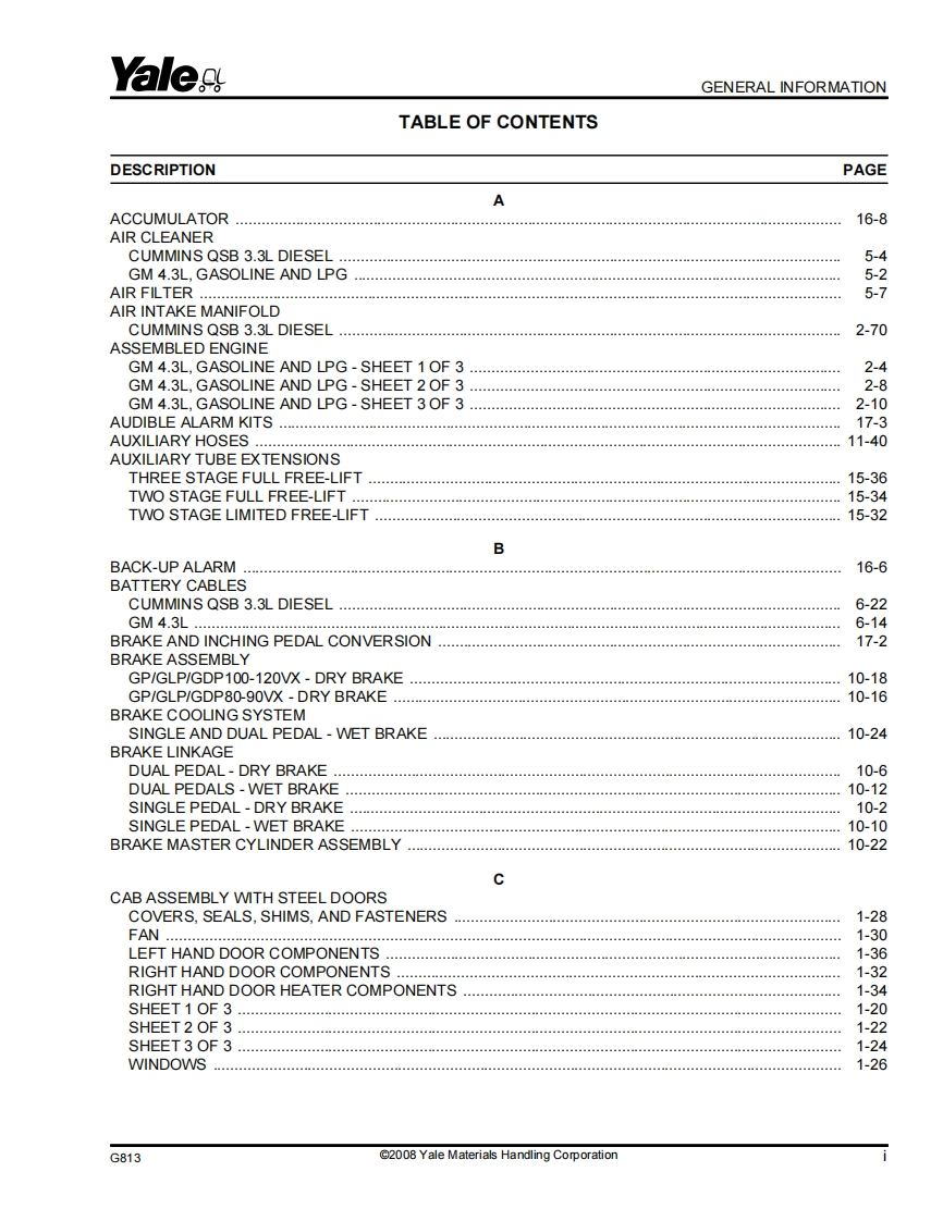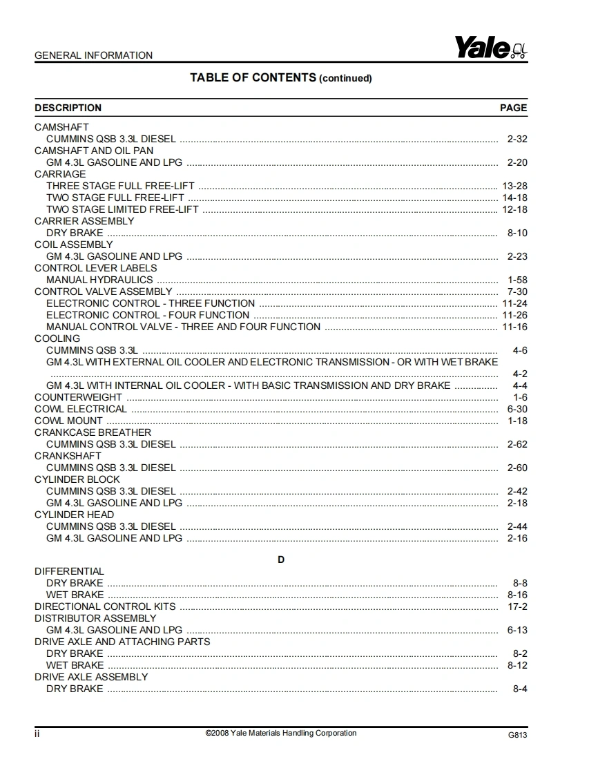 Yale-Forklift-GP080-120VX–GLP080-120VX-GDP080-120VX-VERACITOR(G813)-Parts-Manual零部件目录手册图册找手册网3小时前发布关注私信13.31MB680页033Yale-Forklift-GP080-120VX–GLP080-120VX-GDP080-120VX-VERACITOR(G813)-Parts-Manual零部件目录手册图册此内容为付费资源,请付费后查看¥39¥41黄金会员免费钻石会员免费登录购买付费资源 第1页 / 共680页 第2页 / 共680页 第3页 / 共680页 第4页 / 共680页 第5页 / 共680页 第6页 / 共680页 第7页 / 共680页 第8页 / 共680页 第9页 / 共680页 第10页 / 共680页 试读已结束,还剩670页,您可下载完整版后进行离线阅读 THE END徐工/玉柴/Nifty/TCM/YALE 文本预览 YaleaPARTS MANUALGP080-120VX,GLP080-120VX,GDP080-120VXVERACITOR(G813)@2YalesYale Materials Handling Corporation5243291681400 Sullivan DriveYale Corp.Caller No.1201108/2008Greenville.NC 27834-2011 查看更多 收起部分 喜欢就支持一下吧收藏