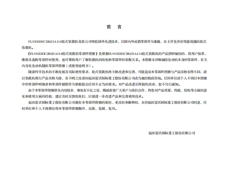 福田雷沃FL935F装载机零部件手册备件目录图册找手册网3小时前发布关注私信16.43MB212页035福田雷沃FL935F装载机零部件手册备件目录图册此内容为付费资源,请付费后查看¥39¥49黄金会员免费钻石会员免费登录购买付费资源 第1页 / 共212页 第2页 / 共212页 第3页 / 共212页 第4页 / 共212页 第5页 / 共212页 第6页 / 共212页 第7页 / 共212页 第8页 / 共212页 第9页 / 共212页 第10页 / 共212页 试读已结束,还剩202页,您可下载完整版后进行离线阅读 THE ENDVolvo/福田 文本预览 FOTONFL935EH3C2B2J1A114轮式装载机零部件图册PARTS CATALOGUE OF WHEELED LOADER福田雷沃国际重工股份有眼公司FOTON LOVOL INTERNATIONAL HEAVY INDUSTRY CO..LTD. 查看更多 收起部分 喜欢就支持一下吧收藏