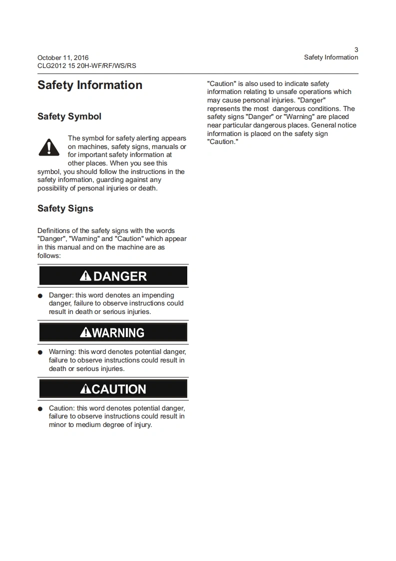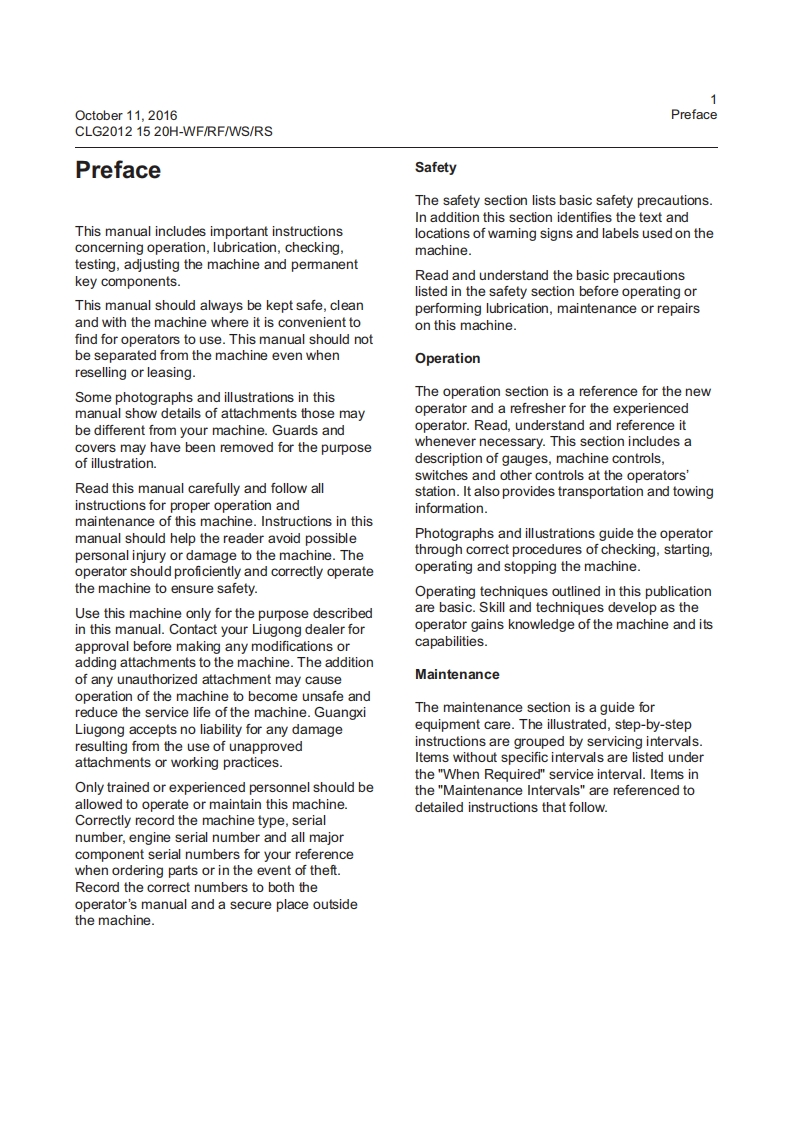 柳工CLG2012-15-20H-WFRFCLG2012-15-20H-WSRS-operation-manual-201610001-EN-Copy操作与维修维护手册含电器液压原理图找手册网4小时前发布关注私信0.63MB30页034柳工CLG2012-15-20H-WFRFCLG2012-15-20H-WSRS-operation-manual-201610001-EN-Copy操作与维修维护手册含电器液压原理图此内容为付费资源,请付费后查看¥39¥49黄金会员免费钻石会员免费登录购买付费资源 第1页 / 共30页 第2页 / 共30页 第3页 / 共30页 第4页 / 共30页 第5页 / 共30页 第6页 / 共30页 第7页 / 共30页 第8页 / 共30页 第9页 / 共30页 第10页 / 共30页 试读已结束,还剩20页,您可下载完整版后进行离线阅读 THE END柳工/临工/龙工/台励福/常林/成工 文本预览 LIUGONG朽印工201610001CLG2012/15/20H-WF/RFCLG2012/15/20H-WS/RSPALLET STACKER(英文)OPERATION ANDMAINTENANCE MANUAL 查看更多 收起部分 喜欢就支持一下吧收藏