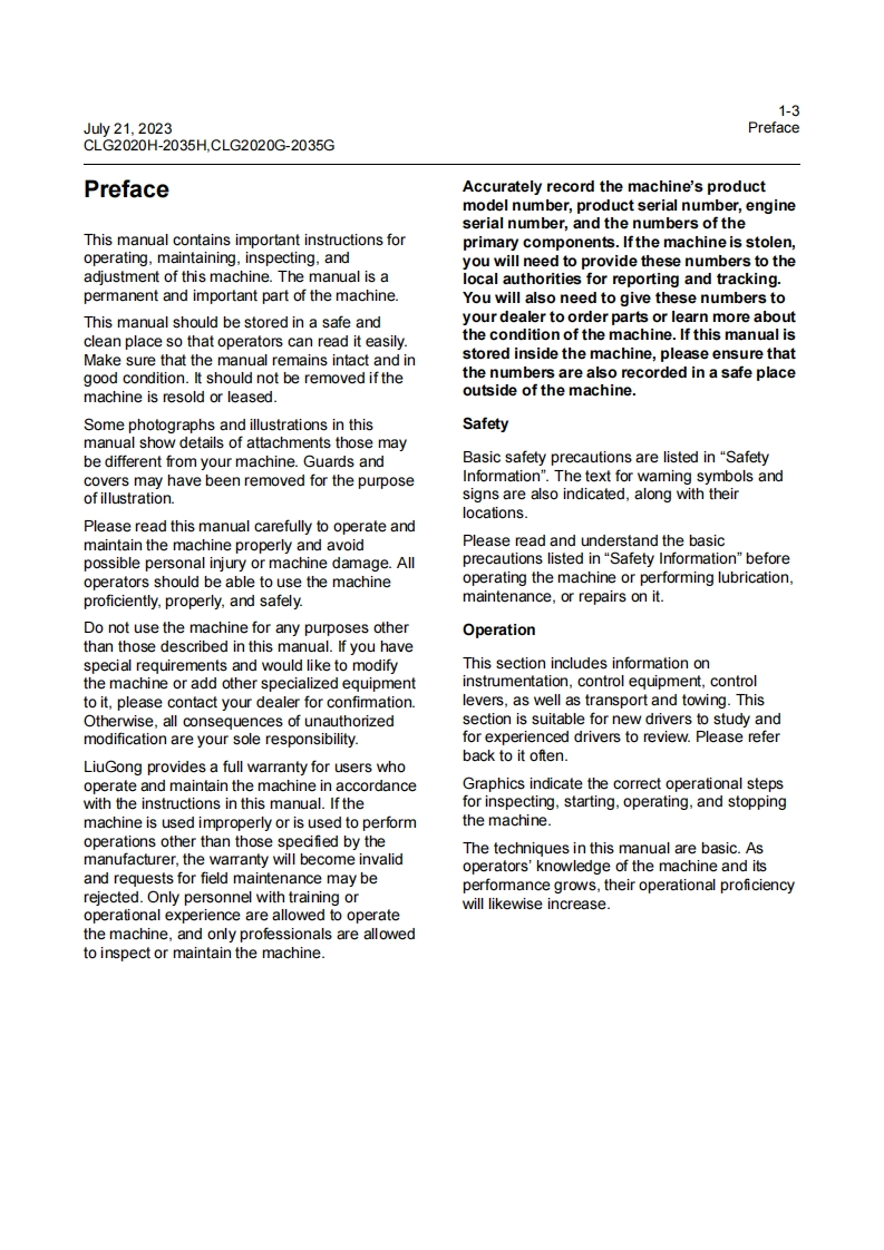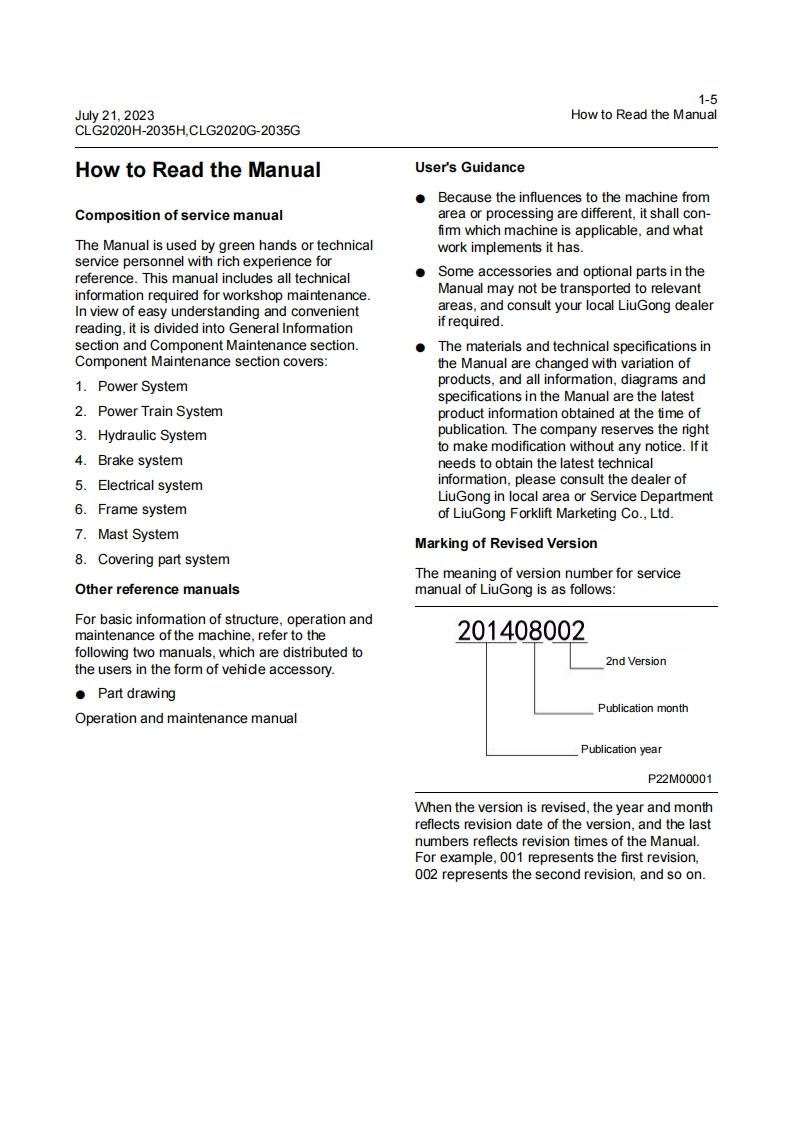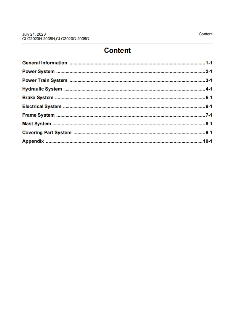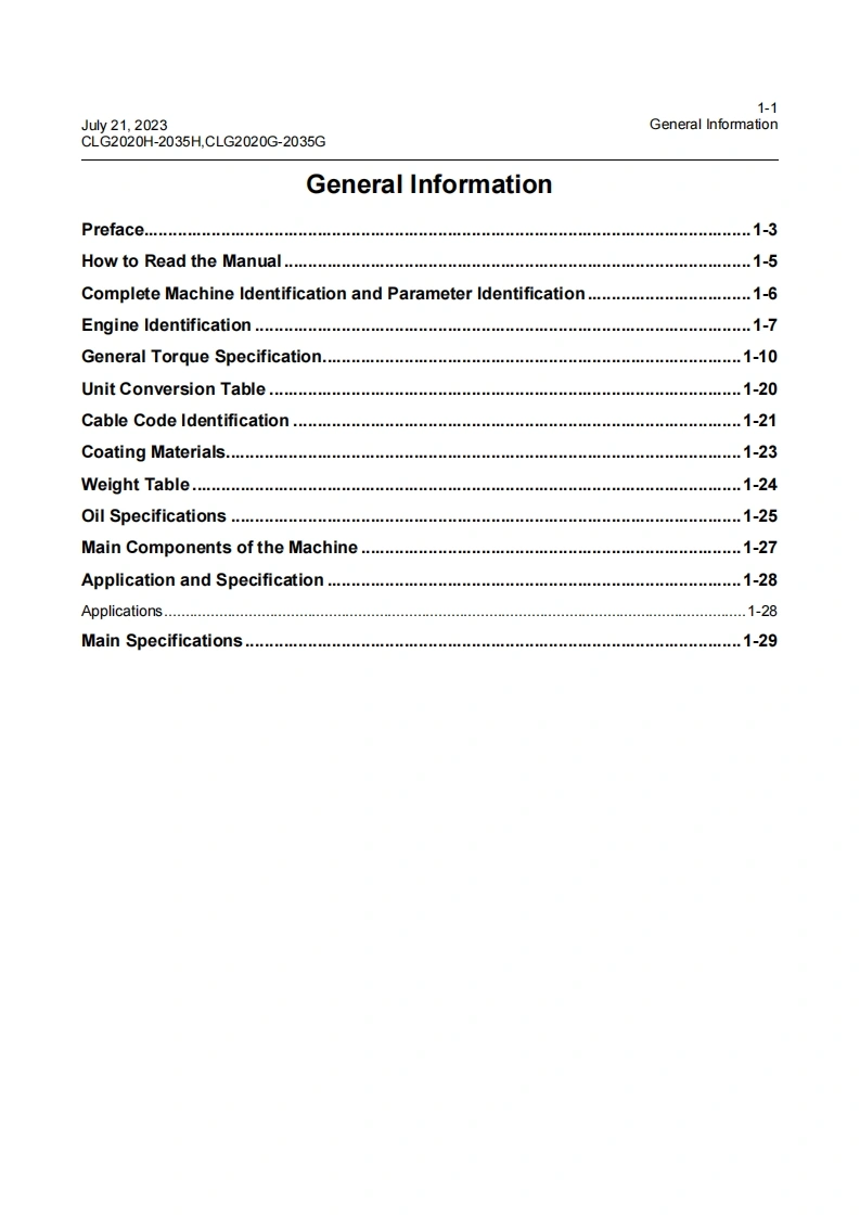 柳工CLG2020H-2035HCLG2020G-2035G-维修手册含电器液压原理图Service-Manual-EN-202307000找手册网3小时前发布关注私信13.70MB366页046柳工CLG2020H-2035HCLG2020G-2035G-维修手册含电器液压原理图Service-Manual-EN-202307000此内容为付费资源,请付费后查看¥39¥49黄金会员免费钻石会员免费登录购买付费资源 第1页 / 共366页 第2页 / 共366页 第3页 / 共366页 第4页 / 共366页 第5页 / 共366页 第6页 / 共366页 第7页 / 共366页 第8页 / 共366页 第9页 / 共366页 第10页 / 共366页 试读已结束,还剩356页,您可下载完整版后进行离线阅读 THE END柳工/临工/龙工/台励福/常林/成工 文本预览 sLIUGONG析印工202307000CLG2020H/C2-2035H/C2CLG2020G/C2-2035G/C2FORKLIFT TRUCKApplicable type and model:CLG2020H/C2,CLG2025H/C2,CLG2030H/C2,CLG2035H/C2CLG2020G/C2,CLG2025G/C2,CLG2030G/C2,CLG2035G/C2 查看更多 收起部分 喜欢就支持一下吧收藏