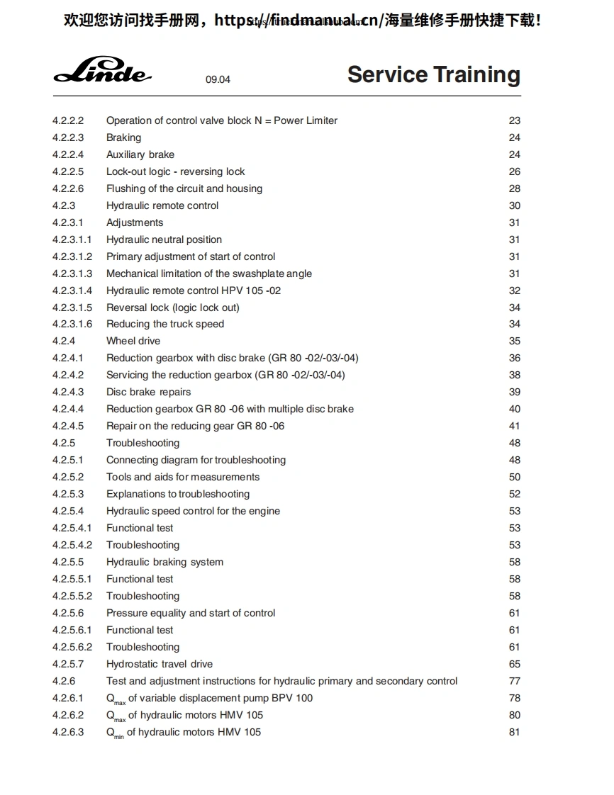 林德叉车Linde-H50D–H50D-03–H60D-03–H50T-03–H70D-03–H60T-03–H70T-03–H80D-03–H80T-03–H60D–H70D–H80D-Service-Manual维修手册含电器液压原理图找手册网3小时前发布关注私信8.78MB282页026林德叉车Linde-H50D–H50D-03–H60D-03–H50T-03–H70D-03–H60T-03–H70T-03–H80D-03–H80T-03–H60D–H70D–H80D-Service-Manual维修手册含电器液压原理图此内容为付费资源,请付费后查看¥39¥49黄金会员免费钻石会员免费登录购买付费资源 第1页 / 共282页 第2页 / 共282页 第3页 / 共282页 第4页 / 共282页 第5页 / 共282页 第6页 / 共282页 第7页 / 共282页 第8页 / 共282页 第9页 / 共282页 第10页 / 共282页 试读已结束,还剩272页,您可下载完整版后进行离线阅读 THE END三一/合力/大连叉车/丰田叉车/林德叉车/三菱叉车/永恒力 文本预览 欢迎您访问找手册网,https://findmanual.cn/海量维修手册快捷下载!Service TrainingLinde IC-Engined Fork TruckH50/60/70/80D/TH50/60/70/80D-02T-02H50/60/70/80D-03/T-03Type 353LINDEMHANDEINGuS and ramains te excluaste propery of 查看更多 收起部分 喜欢就支持一下吧收藏