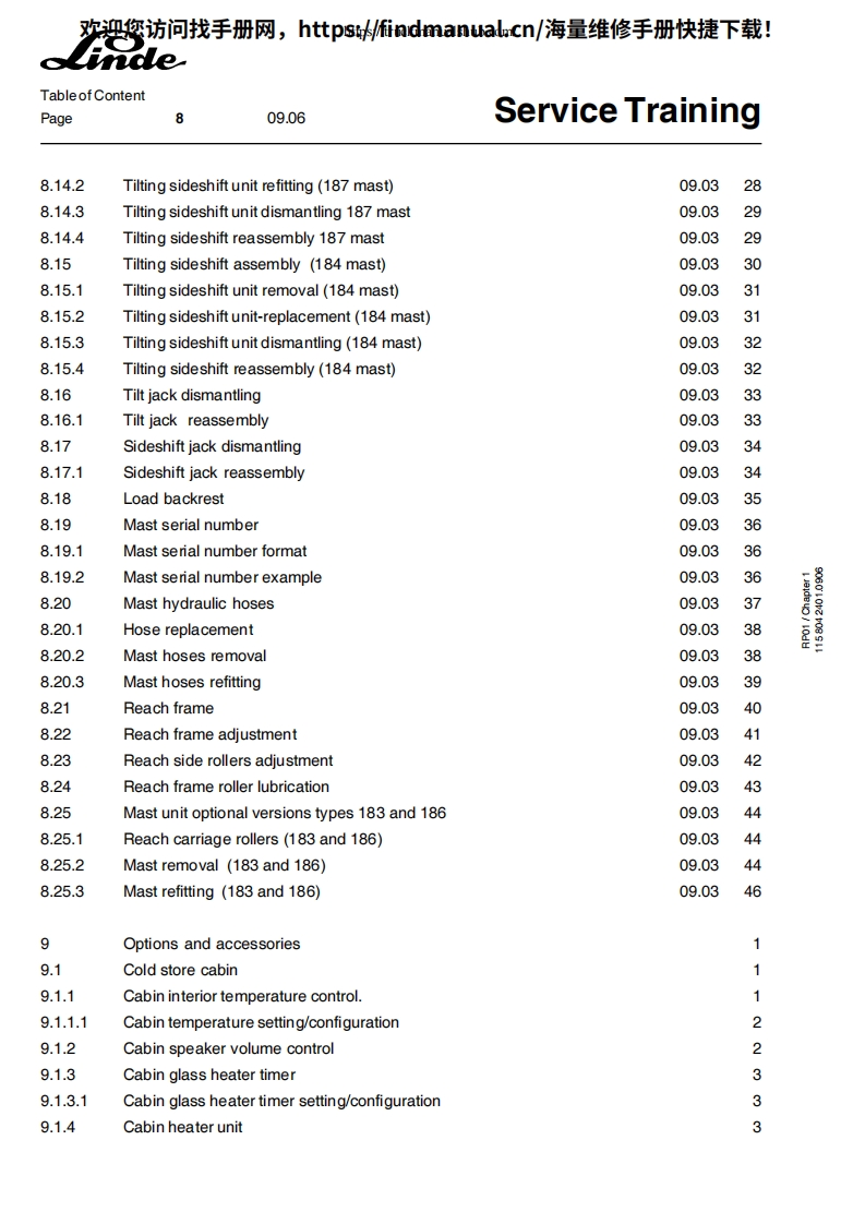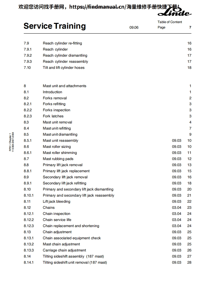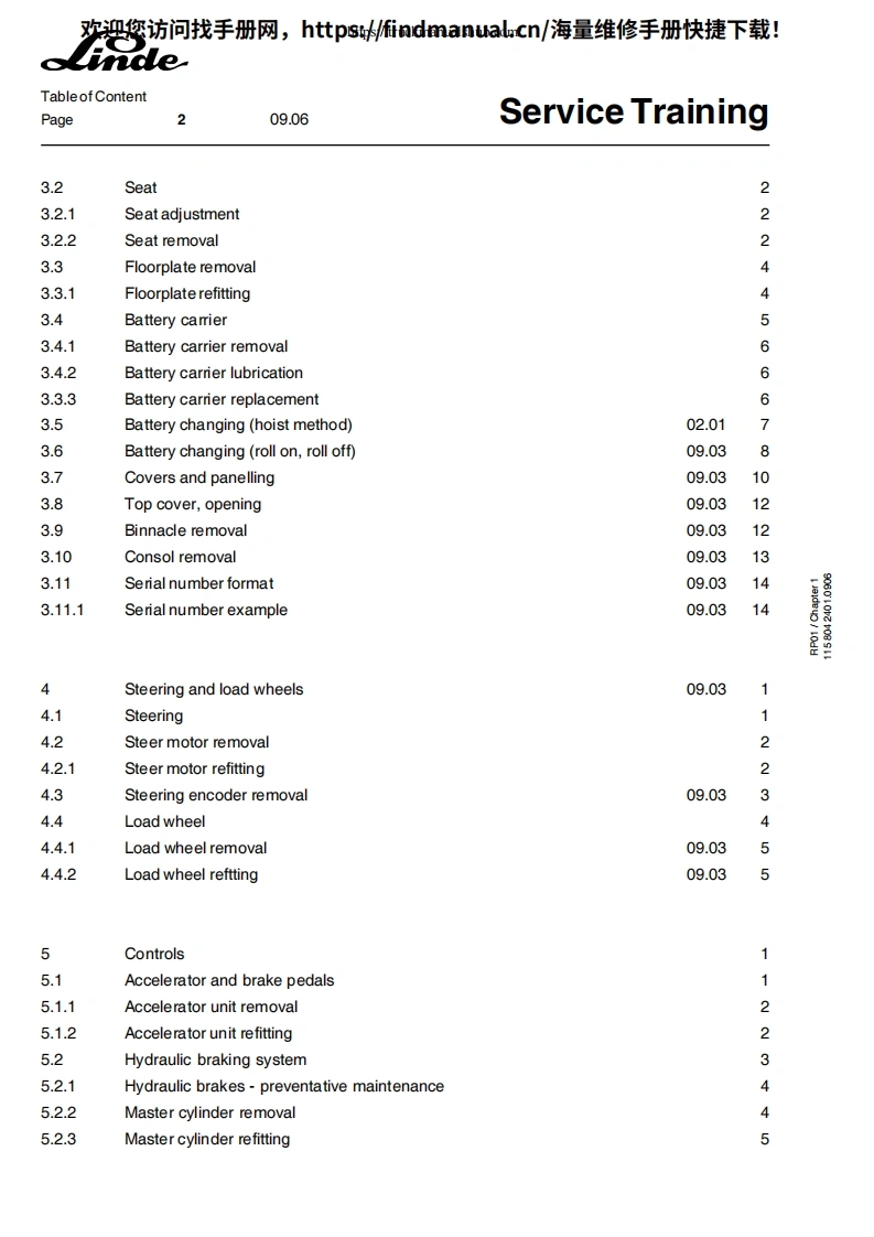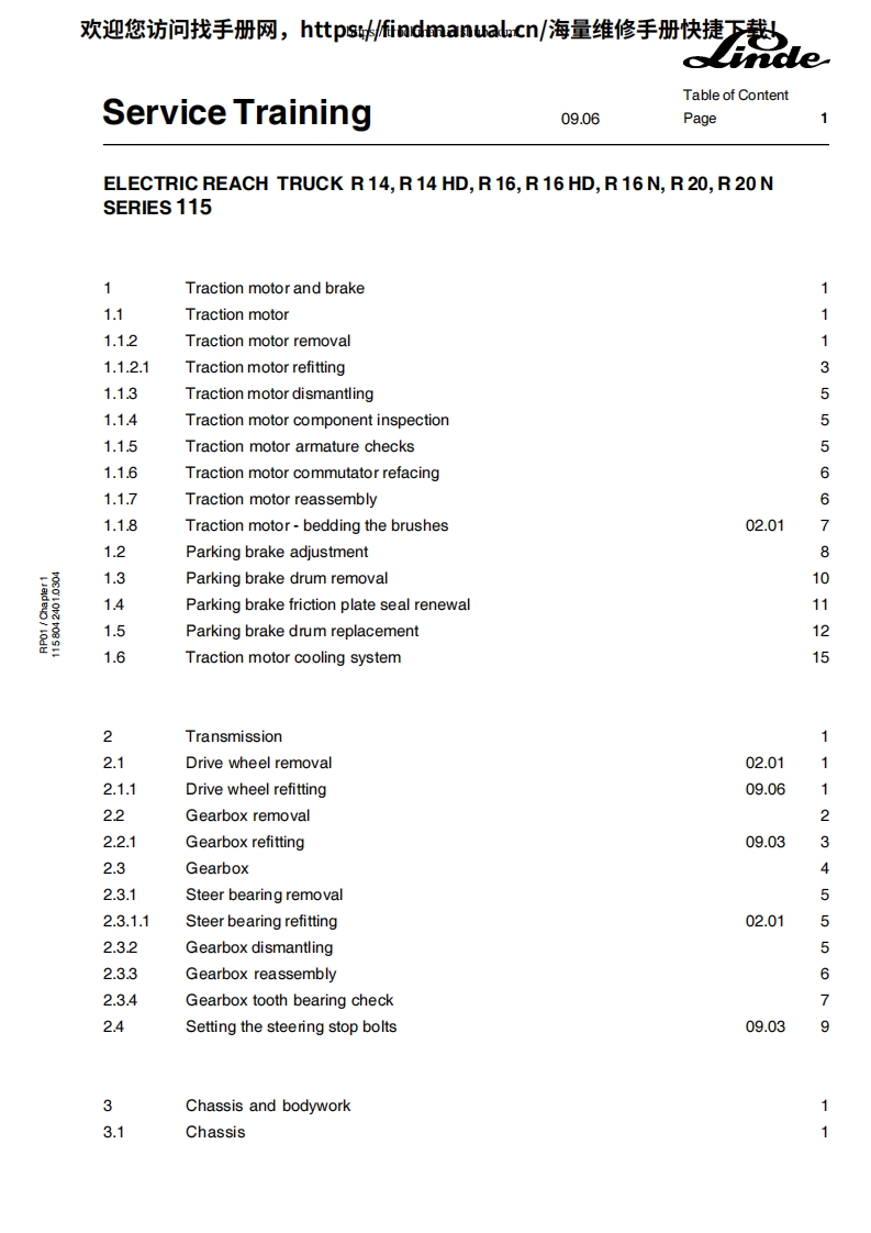欢迎您访问找手册网,https://findmanual.cn/海量维修手册快捷下载!Service TrainingLinde Electric Reach TruckR14R14 HDR16R16 HDR16NR20R 20 NSeries 1151502This document is only provided for your use during training and it remains the exclusive property ofLINDE MATERIAL HANDLING(UK)LTD.Kingsclere Rd.Basingstoke