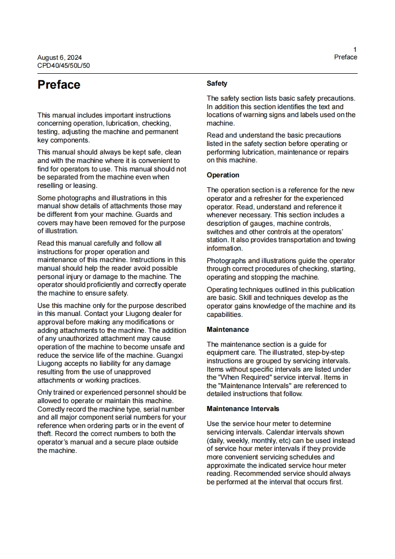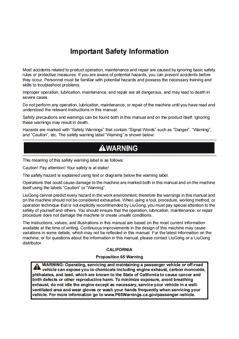 柳工CPD404550L50-E-series-Maintenamce操作与维修维护手册含电器液压原理图找手册网3小时前发布关注私信10.85MB170页023柳工CPD404550L50-E-series-Maintenamce操作与维修维护手册含电器液压原理图此内容为付费资源,请付费后查看¥39¥49黄金会员免费钻石会员免费登录购买付费资源 第1页 / 共170页 第2页 / 共170页 第3页 / 共170页 第4页 / 共170页 第5页 / 共170页 第6页 / 共170页 第7页 / 共170页 第8页 / 共170页 第9页 / 共170页 第10页 / 共170页 试读已结束,还剩160页,您可下载完整版后进行离线阅读 THE END柳工/临工/龙工/台励福/常林/成工 文本预览 GLIUGONG朽印工202408000CPD40/45/50L/50BATTERY FORKLIFT TRUCKE SERIES(英文)OPERATION ANDMAINTENANCE MANUAL 查看更多 收起部分 喜欢就支持一下吧收藏