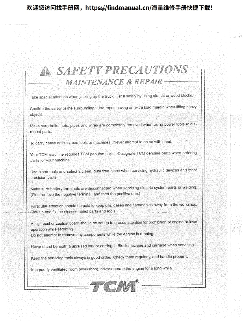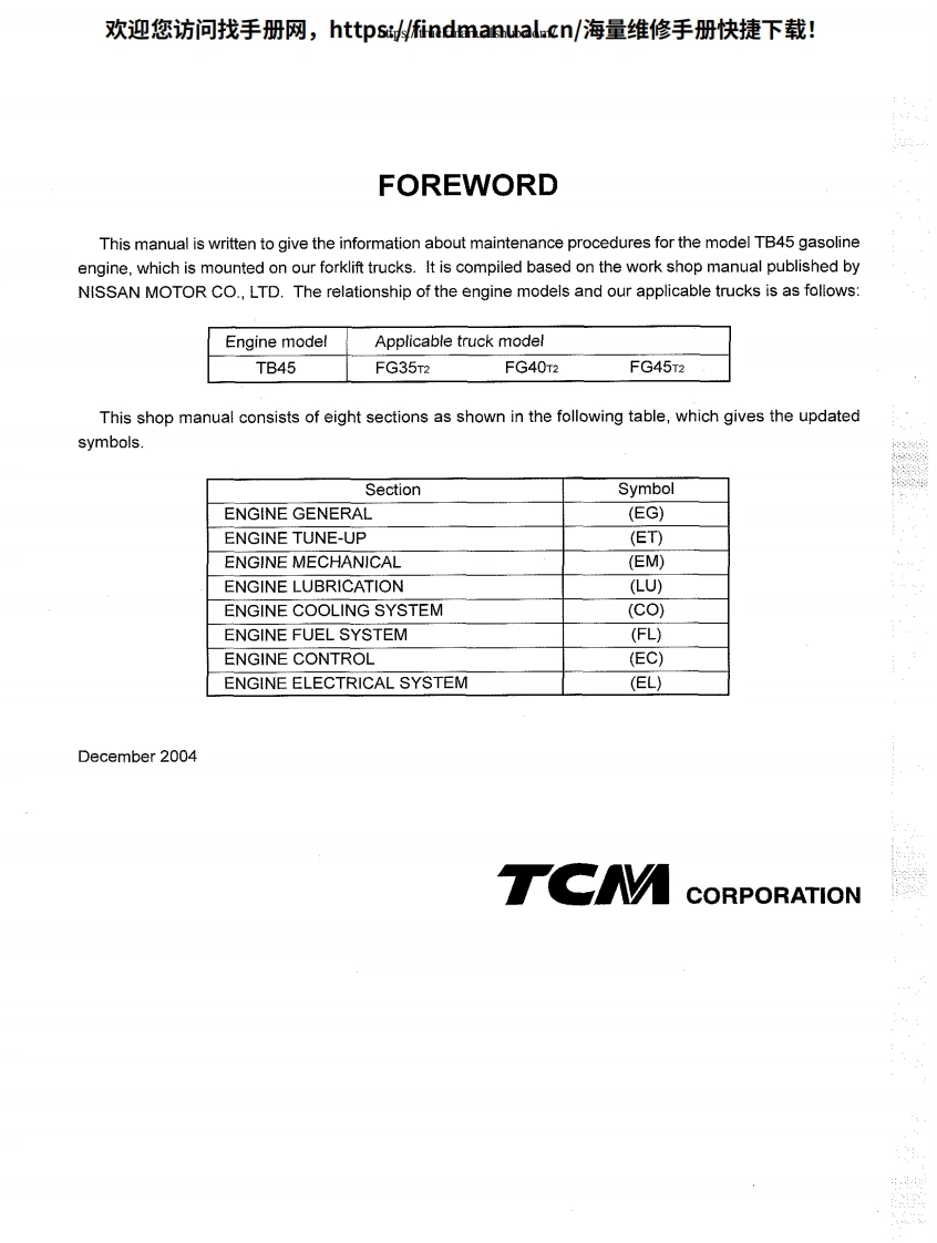 TCM叉车-TB45-Gasoline-Engine-Shop-Manual维修手册含电器液压原理图找手册网2小时前发布关注私信4.39MB211页020TCM叉车-TB45-Gasoline-Engine-Shop-Manual维修手册含电器液压原理图此内容为付费资源,请付费后查看¥39¥41黄金会员免费钻石会员免费登录购买付费资源 第1页 / 共211页 第2页 / 共211页 第3页 / 共211页 第4页 / 共211页 第5页 / 共211页 第6页 / 共211页 第7页 / 共211页 第8页 / 共211页 第9页 / 共211页 第10页 / 共211页 试读已结束,还剩201页,您可下载完整版后进行离线阅读 THE END徐工/玉柴/Nifty/TCM/YALE 文本预览 欢迎您访问找手册网,https://findmanual.cn/海量维修手册快捷下载!No.雅ET器5A羽TCMSHOP MANUALMODEL:NISSAN-TB45GASOLINE ENGINETCM CORPORATION 查看更多 收起部分 喜欢就支持一下吧收藏