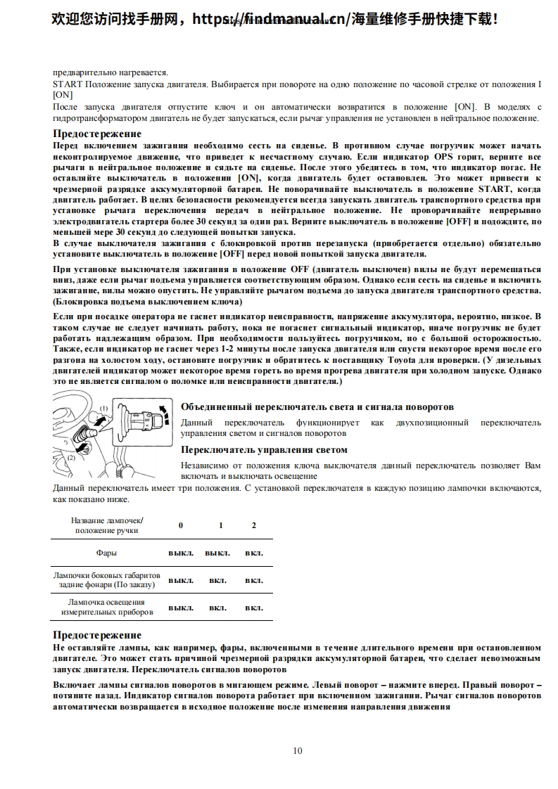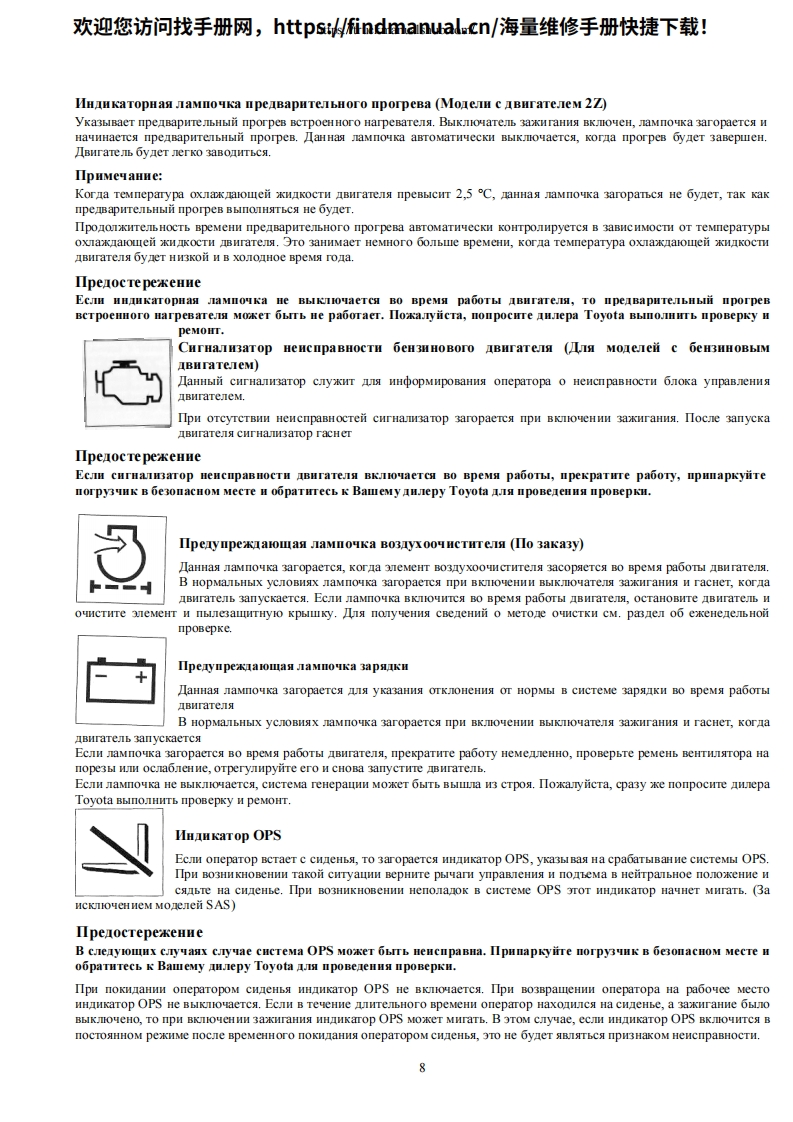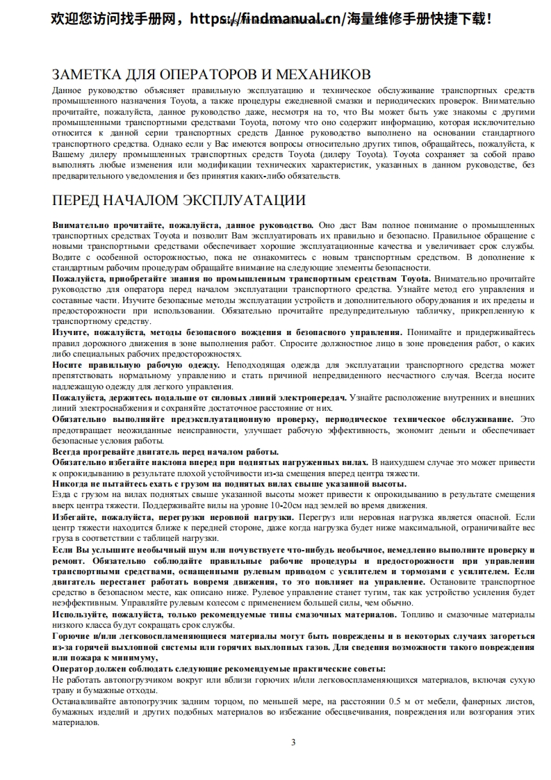 欢迎您访问找手册网,https://findmanual.cn/海量维修手册快捷下载!TOYOTAINDUSTRIAL EQUIPMENTTOYOTASERIESPyKOBOCTBO no 3KcnJyATALNNBWnOYHbIE nOrPy34NKN cepnn 8FG/8FDrpy3onoabeMHOCTbIO 1 3,5 TOHHbIC ABNraTeneM BHyTpeHHerocropaHnAHa konecax c nHeBMaTNyecKNMN山HaMnPEMΠOooHuHaJIbHbIn IHJIep B BOCTOYHOM perHoHe yKpaHHbI
