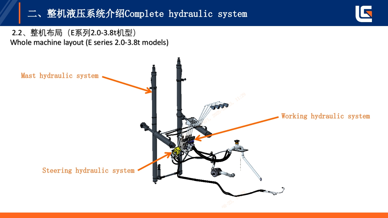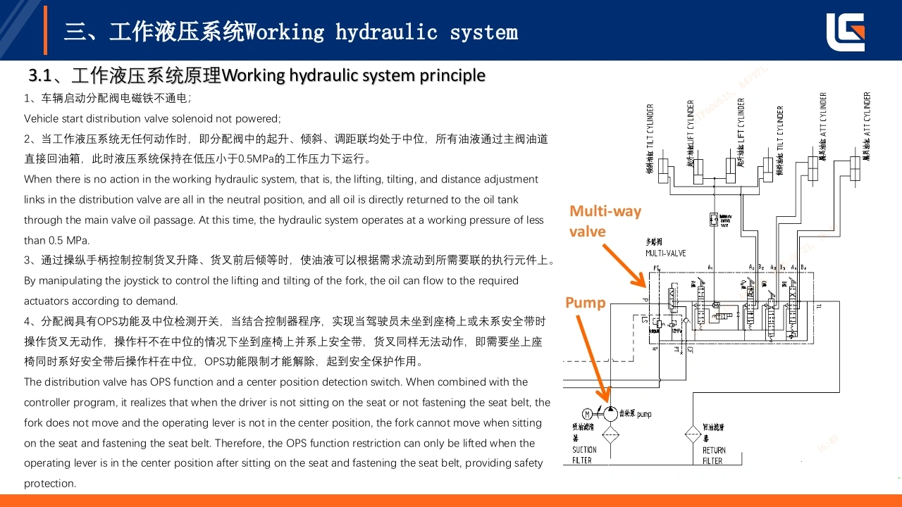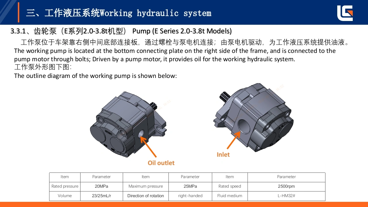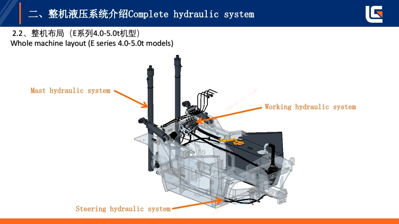 LIUGONG灯即工E系列低压锂电2-3.8T,4-5T平衡重式叉车液压系统培训TRAINING ON HYDRAULIC SYSTEM OF E-SERIES LOW-VOLTAGELITHIUM BATTERY 2-3.8T,4-5T COUNTERBALANCED FORKLIFT编制:戴婷Prepared by:Ting Dai单位:柳工叉车工业车辆研究院Unit:LiuGong forklift industrialvehicle research institute极限工况强悍设备TOUGH WORLD.TOUGH EQUIPMENT.