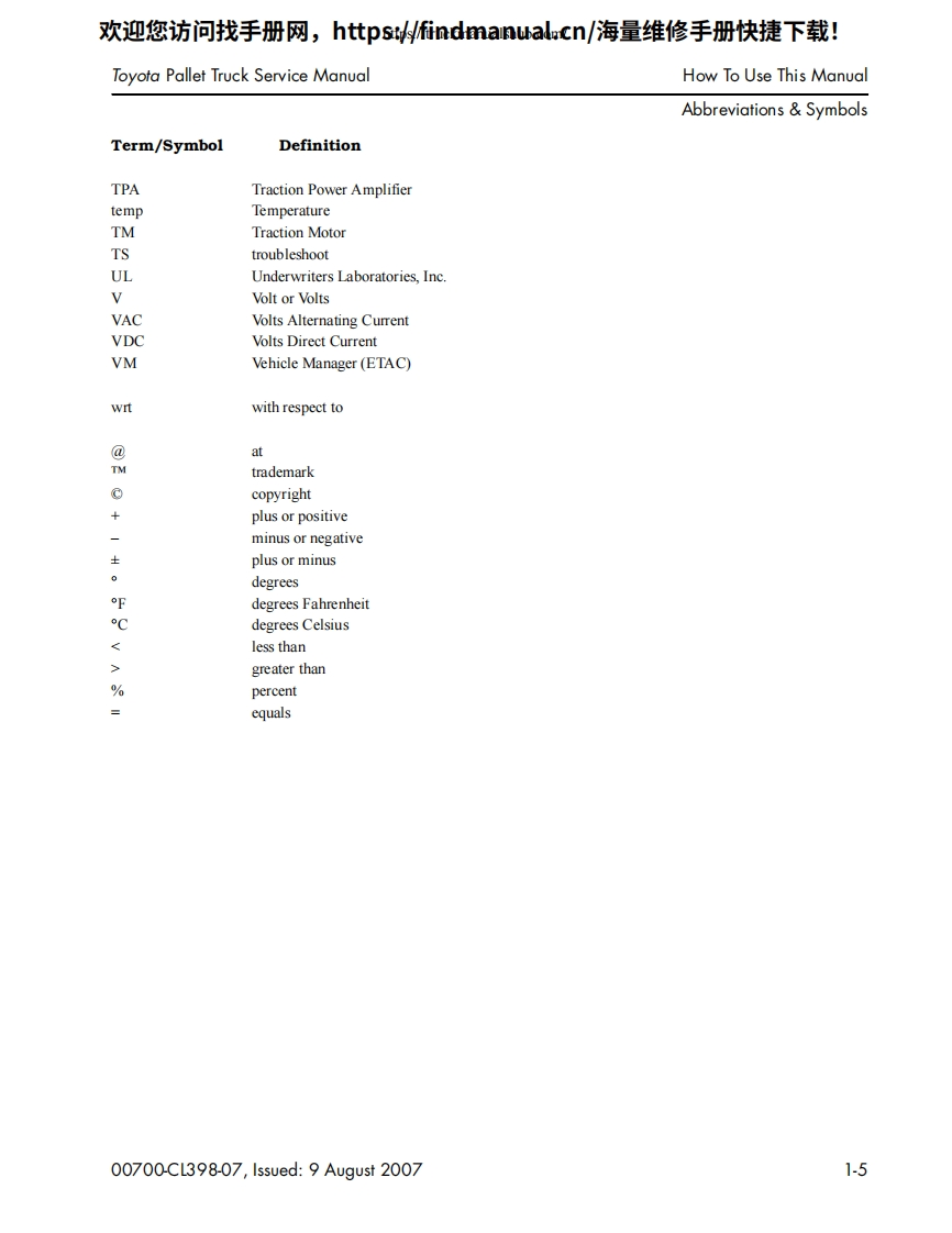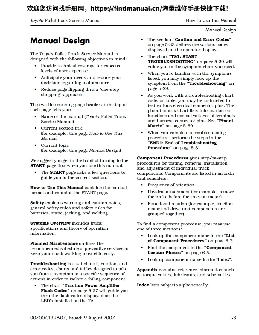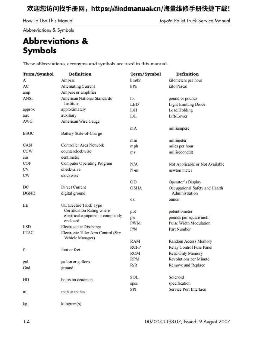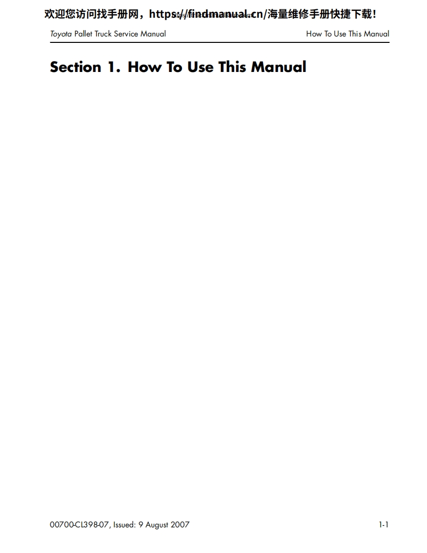 丰田叉车Toyota-Pallet-Trucks-8HBW30–8HBE30–8HBE40–8HBC30–8HBC40–8TB50-Service-Manual维修手册含电器液压原理图找手册网3小时前发布关注私信1.96MB46页041丰田叉车Toyota-Pallet-Trucks-8HBW30–8HBE30–8HBE40–8HBC30–8HBC40–8TB50-Service-Manual维修手册含电器液压原理图此内容为付费资源,请付费后查看¥39¥49黄金会员免费钻石会员免费登录购买付费资源 第1页 / 共46页 第2页 / 共46页 第3页 / 共46页 第4页 / 共46页 第5页 / 共46页 第6页 / 共46页 第7页 / 共46页 第8页 / 共46页 第9页 / 共46页 第10页 / 共46页 试读已结束,还剩36页,您可下载完整版后进行离线阅读 THE END三一/合力/大连叉车/丰田叉车/林德叉车/三菱叉车/永恒力 文本预览 欢迎您访问找手册网,https://findmanual.cn/海量维修手册快捷下载!TOYOTAINDUSTRIAL EQUIPMENTSERVICE MANUALPallet Trucks8HBW308HBE308HBE408HBC308HBC408TB5000700-CL398-07,Issued:9 August 2007 查看更多 收起部分 喜欢就支持一下吧收藏