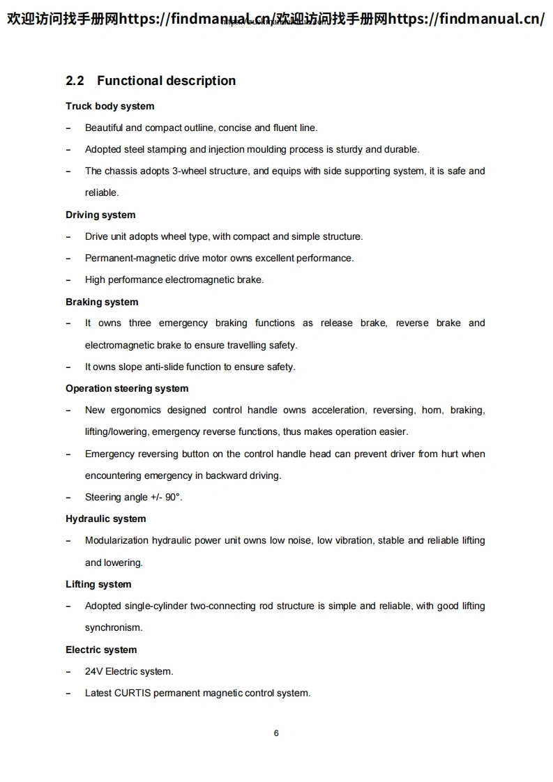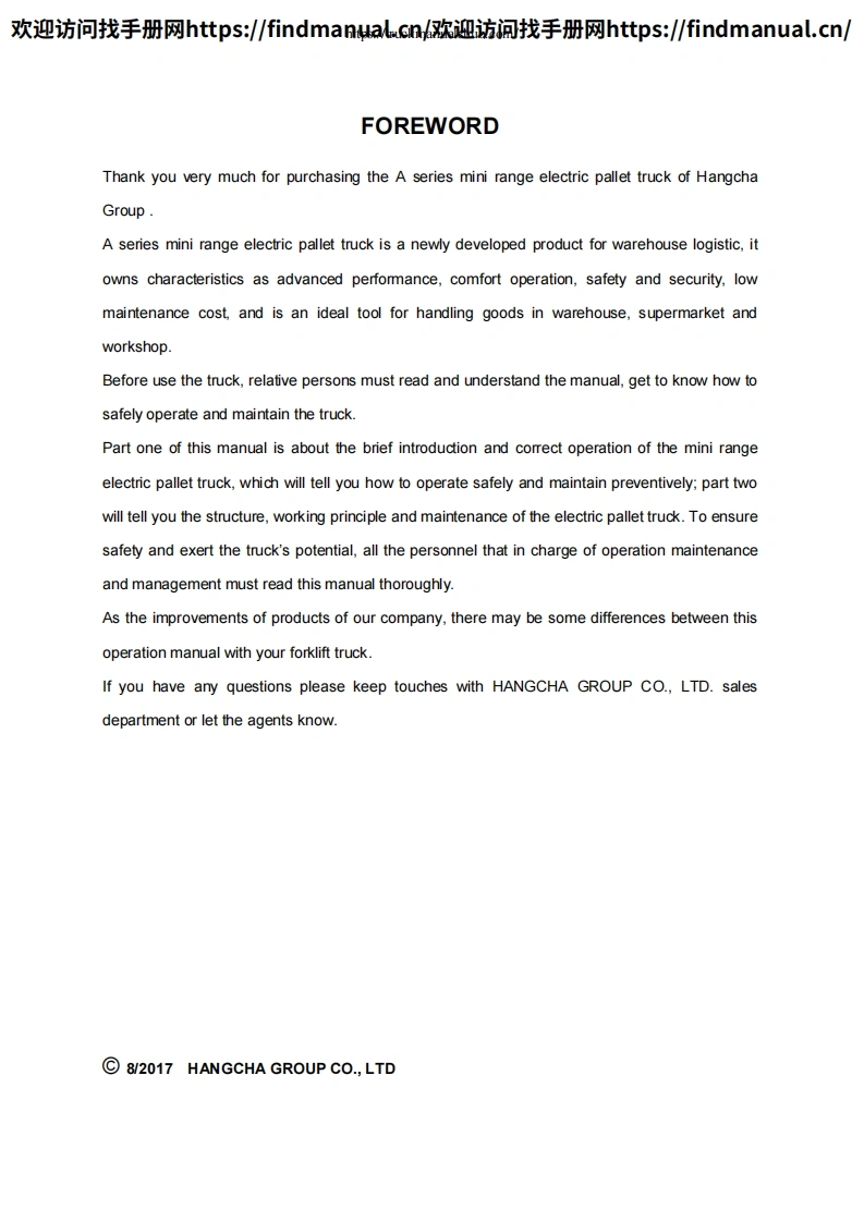 杭州叉车Hangcha-CBD15-A2MC1-Operation-And-Maintenance-Manual操作与维修手册含电器液压原理图找手册网3天前发布关注私信7.17MB72页045杭州叉车Hangcha-CBD15-A2MC1-Operation-And-Maintenance-Manual操作与维修手册含电器液压原理图此内容为付费资源,请付费后查看¥39¥49黄金会员免费钻石会员免费登录购买付费资源 第1页 / 共72页 第2页 / 共72页 第3页 / 共72页 第4页 / 共72页 第5页 / 共72页 第6页 / 共72页 第7页 / 共72页 第8页 / 共72页 第9页 / 共72页 第10页 / 共72页 试读已结束,还剩62页,您可下载完整版后进行离线阅读 THE END杭州叉车/Dino/Bao-li叉车/现代 文本预览 欢迎访问找手册网https:/findmanual.cn欢迎访间找手册网https:/findmanual.cn/SC-HANGCHAMini RangeELECTRIC PALLET TRUCKCBD15-A2MC1CBD15-A2MC1-FOPERATION AND MAINTENANCEMANUALOriginal InstructionHANGCHA GROUP CO.,LTD.8/2017 查看更多 收起部分 喜欢就支持一下吧收藏