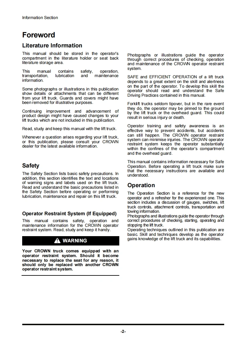科朗叉车cg操作与维修手册含电器液压原理图找手册网3天前发布关注私信11.10MB164页044科朗叉车cg操作与维修手册含电器液压原理图此内容为付费资源,请付费后查看¥39¥49黄金会员免费钻石会员免费登录购买付费资源 第1页 / 共164页 第2页 / 共164页 第3页 / 共164页 第4页 / 共164页 第5页 / 共164页 第6页 / 共164页 第7页 / 共164页 第8页 / 共164页 第9页 / 共164页 第10页 / 共164页 试读已结束,还剩154页,您可下载完整版后进行离线阅读 THE ENDJLG/CROWN/Bobcat 文本预览 ▣WOperationMaintenance ManualFORKLIFTSCGC35S-5,CGC40S-5,CGC45S-5CGC50C-5,CGC55C-5FGBOA,FGBOB,FGBOC,FBGBOD,FGBOEPSI 4.3L Tier-31612 查看更多 收起部分 喜欢就支持一下吧收藏