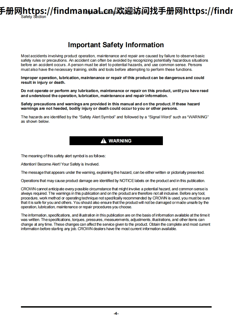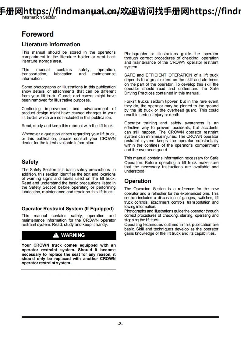 科朗叉车Crown-CGC35S-5–CGC40S-5–CGC45S-5–CGC50C-5–CGC55C-5-Service–Maintenance-Manual操作与维修手册含电器液压原理图找手册网3天前发布关注私信11.10MB164页034科朗叉车Crown-CGC35S-5–CGC40S-5–CGC45S-5–CGC50C-5–CGC55C-5-Service–Maintenance-Manual操作与维修手册含电器液压原理图此内容为付费资源,请付费后查看¥39¥49黄金会员免费钻石会员免费登录购买付费资源 第1页 / 共164页 第2页 / 共164页 第3页 / 共164页 第4页 / 共164页 第5页 / 共164页 第6页 / 共164页 第7页 / 共164页 第8页 / 共164页 第9页 / 共164页 第10页 / 共164页 试读已结束,还剩154页,您可下载完整版后进行离线阅读 THE ENDJLG/CROWN/Bobcat 文本预览 手册网https:/findmanual.cn欢迎访间找手册网https:/finda▣WOperationMaintenance ManualFORKLIFTSCGC35S-5,CGC40S-5,CGC45S-5CGC50C-5,CGC55C-5FGBOA,FGBOB,FGBOC,FBGBOD,FGBOEPSI 4.3L Tier-31612 查看更多 收起部分 喜欢就支持一下吧收藏