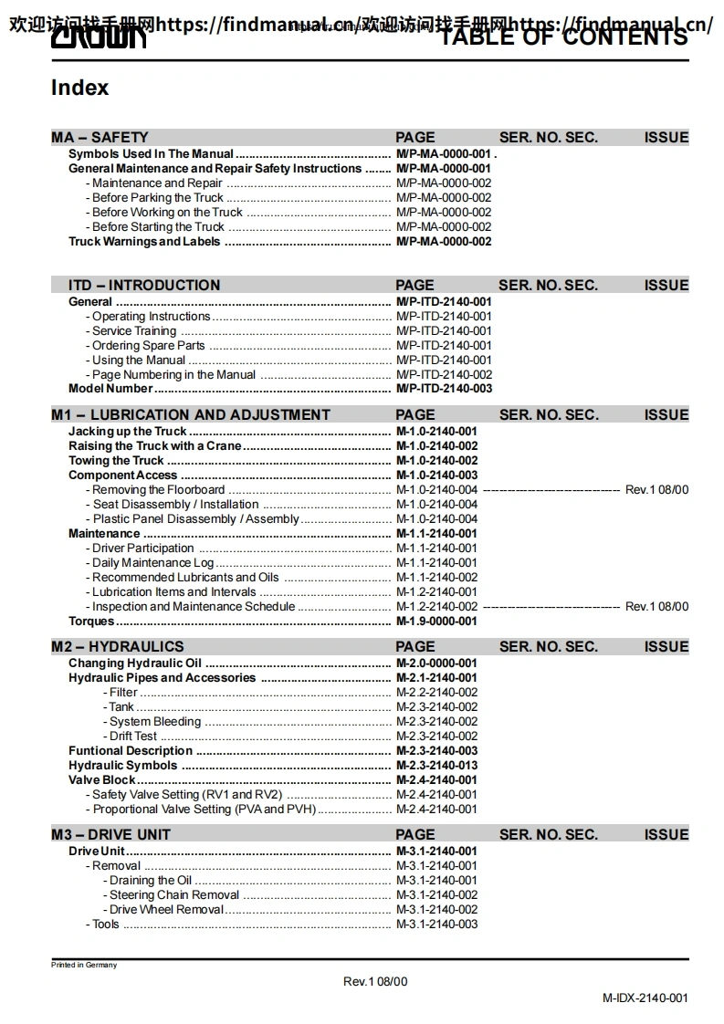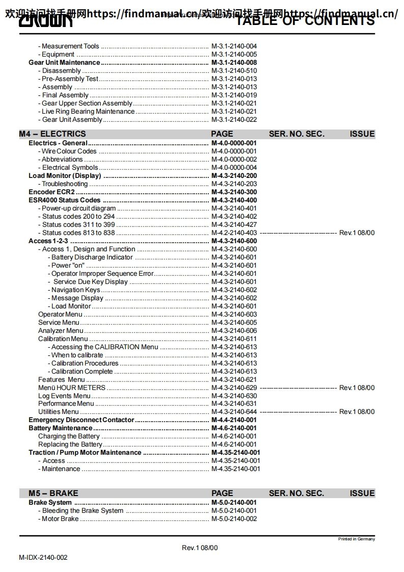 科朗叉车Crown-ESR4000-Service-Manual操作与维修手册含电器液压原理图找手册网3天前发布关注私信17.84MB310页029科朗叉车Crown-ESR4000-Service-Manual操作与维修手册含电器液压原理图此内容为付费资源,请付费后查看¥39¥49黄金会员免费钻石会员免费登录购买付费资源 第1页 / 共310页 第2页 / 共310页 第3页 / 共310页 第4页 / 共310页 第5页 / 共310页 第6页 / 共310页 第7页 / 共310页 第8页 / 共310页 第9页 / 共310页 第10页 / 共310页 试读已结束,还剩300页,您可下载完整版后进行离线阅读 THE ENDJLG/CROWN/Bobcat 文本预览 m/COUhttps://findmanual.cn/欢迎访j问找手册网htts:/findmanual..cn/cnownCnOWnService ManualESR4000Series 查看更多 收起部分 喜欢就支持一下吧收藏