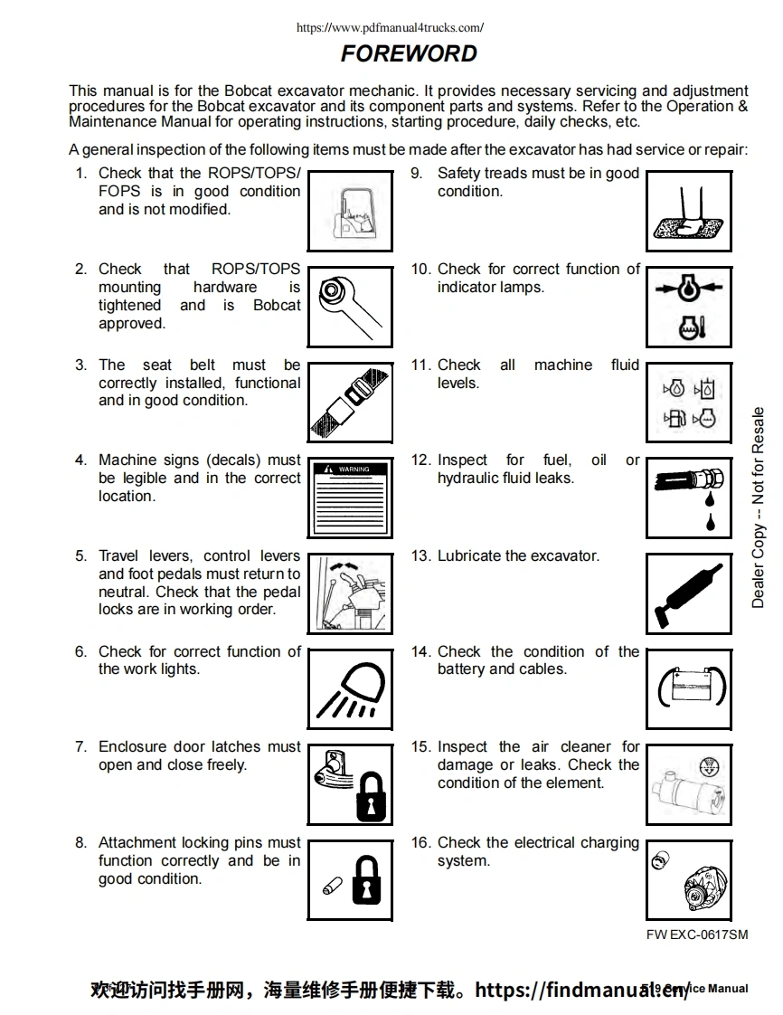 https://www.pdfmanual4trucks.com/Service Manual互日Compact ExcavatorS/N AWMM11001 AboveS/N B3LA11001 AboveS/N B3LB11001 AboveS/N B4PK11001 Above7255013enUs(11-18)(间Printed in U.S.A.@2018 Bobcat Company.All rights reservedT2 T4-K S5欢迎访问找手册网,海量维修手册便捷下载。https:/findmanual.cn/