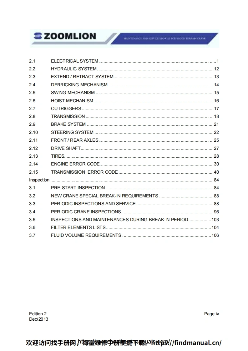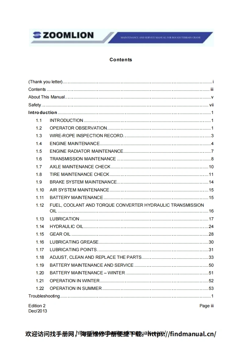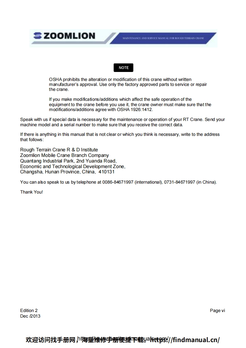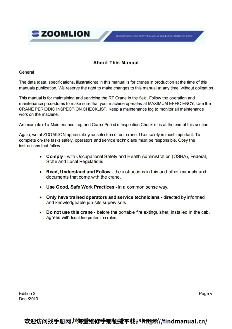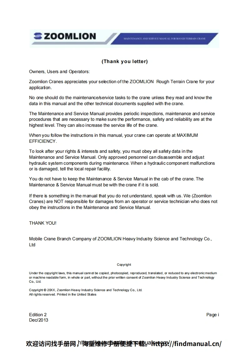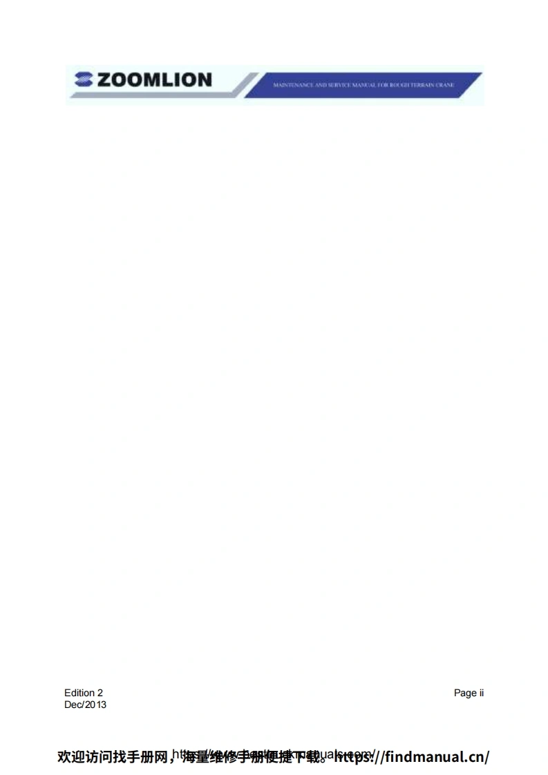 Vision creates futureSZOOMLIONZOOMLIONMAINTENANCE MANUAL FORROUGH TERRAIN CRANE200MUON HEAY INDUSTRY SCENCE AND TECHNOLOGY OOULTDChangsha Ecoonic and Toemdogical DevdepmentZone.Hunan Proince CnaPostoode:410131ZOOMLION HEAWY NDUSTRY SCIENCE AND TECHNOLOGY OOLTD欢迎访问找手册网,期维修李册梗键P载t到/6 ndmanual..cn/