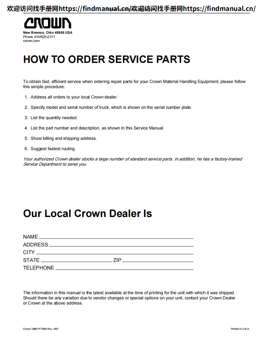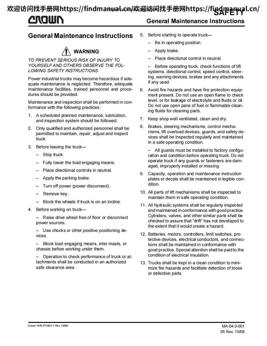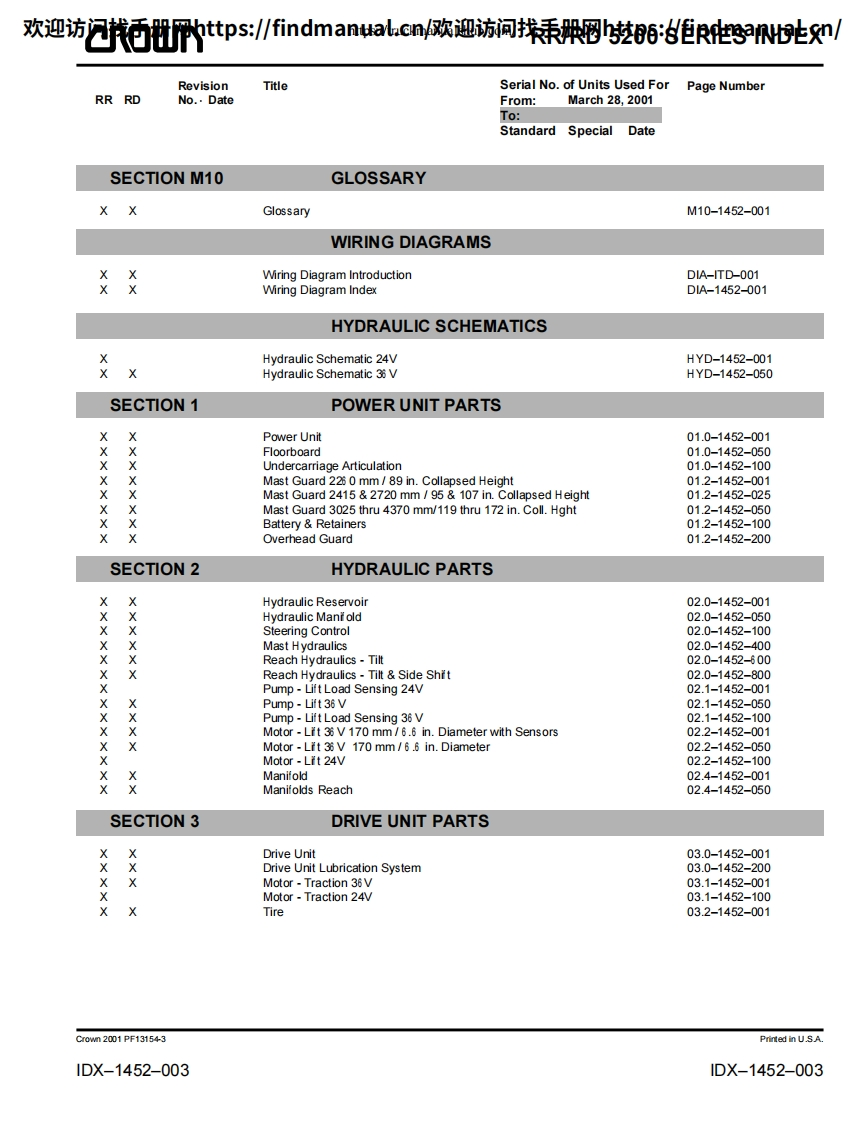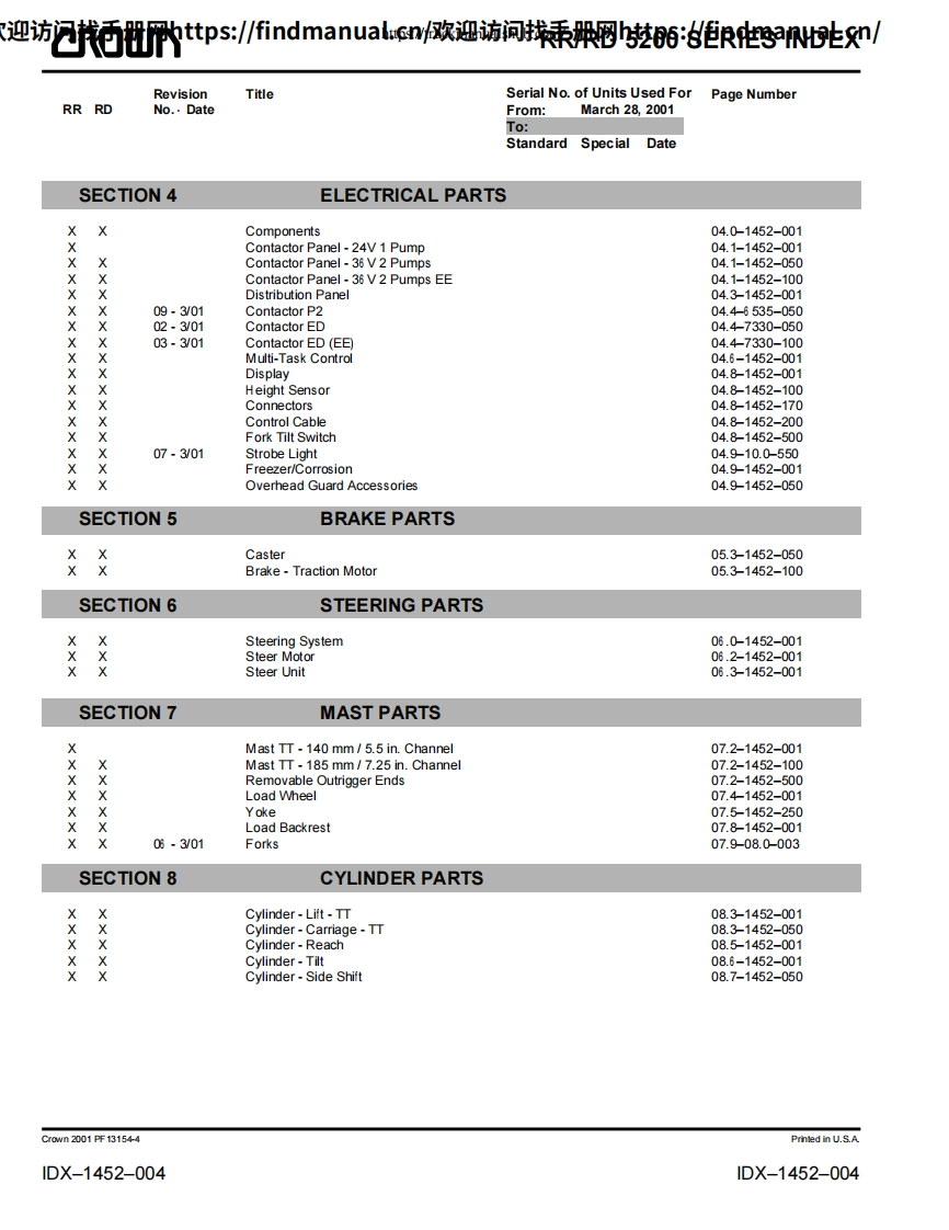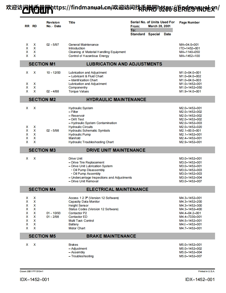 科朗叉车Crown-RR-5200-DC-Service–Parts-Manual操作与维修手册含电器液压原理图找手册网3天前发布关注私信43.07MB829页042科朗叉车Crown-RR-5200-DC-Service–Parts-Manual操作与维修手册含电器液压原理图此内容为付费资源,请付费后查看¥39¥49黄金会员免费钻石会员免费登录购买付费资源 第1页 / 共829页 第2页 / 共829页 第3页 / 共829页 第4页 / 共829页 第5页 / 共829页 第6页 / 共829页 第7页 / 共829页 第8页 / 共829页 第9页 / 共829页 第10页 / 共829页 试读已结束,还剩819页,您可下载完整版后进行离线阅读 THE ENDJLG/CROWN/Bobcat 文本预览 欢迎访问找手册网https:/findmanual.cny欢迎访间找手册网https:/findmanual..cn/r▣WRR 5200 DCService Parts ManualCrown PF13000-00M 查看更多 收起部分 喜欢就支持一下吧收藏
