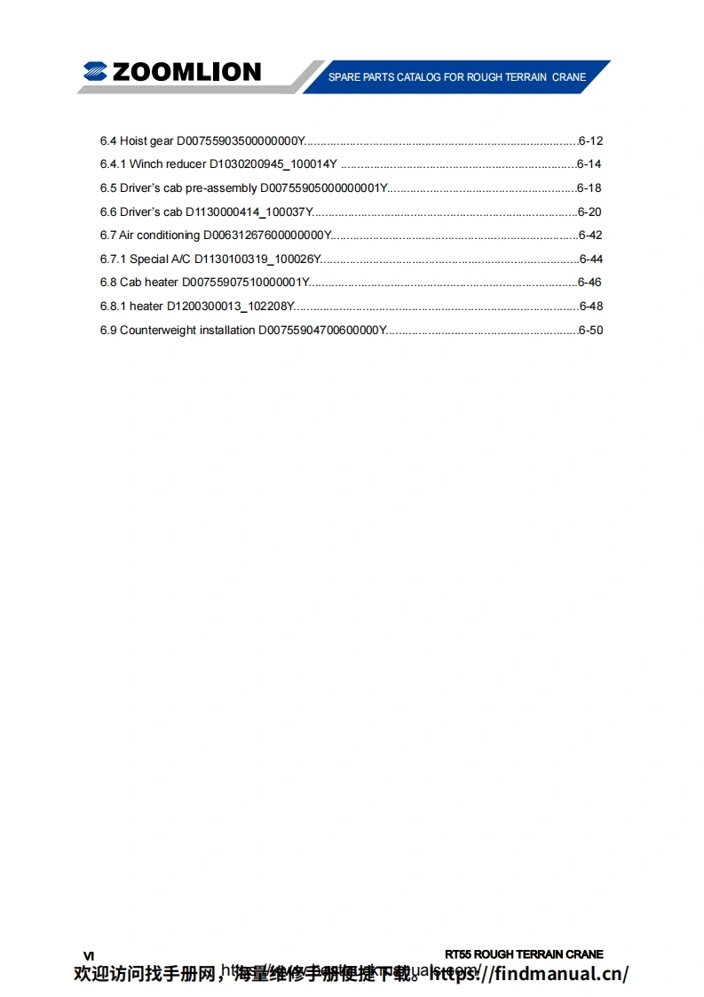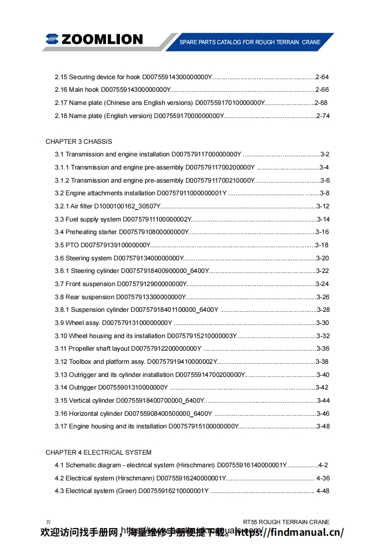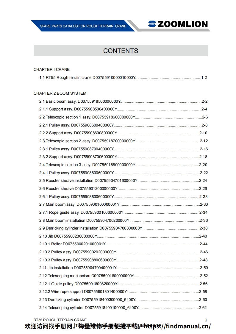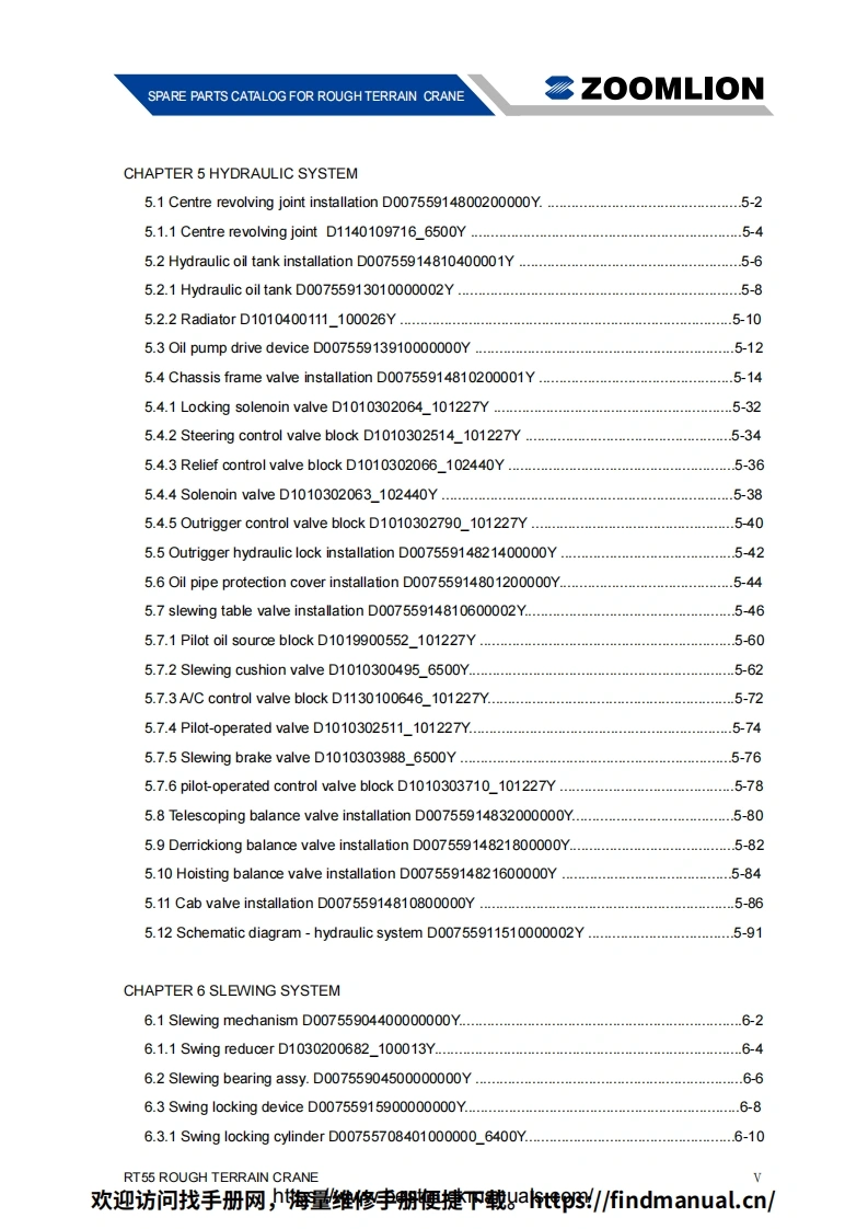 中联重科Zoomlion-RT55-Rough-Terrain-Truck-Crane-Spare-Parts-Catalog-PDF操作与维修手册含电器液压原理图找手册网3天前发布关注私信29.91MB348页036中联重科Zoomlion-RT55-Rough-Terrain-Truck-Crane-Spare-Parts-Catalog-PDF操作与维修手册含电器液压原理图此内容为付费资源,请付费后查看¥39¥49黄金会员免费钻石会员免费登录购买付费资源 第1页 / 共348页 第2页 / 共348页 第3页 / 共348页 第4页 / 共348页 第5页 / 共348页 第6页 / 共348页 第7页 / 共348页 第8页 / 共348页 第9页 / 共348页 第10页 / 共348页 试读已结束,还剩338页,您可下载完整版后进行离线阅读 THE END中联重科/山河智能/Doosan/BT 文本预览 ZOOMLONSPARE PARTS CATALOG FORRT55 ROUGH TERRAIN CRANEDecember,2013 Edition:1欢迎访问找手册网,h海量维修手册鞭捷吓载gat性3/findmanual.cn/ 查看更多 收起部分 喜欢就支持一下吧收藏