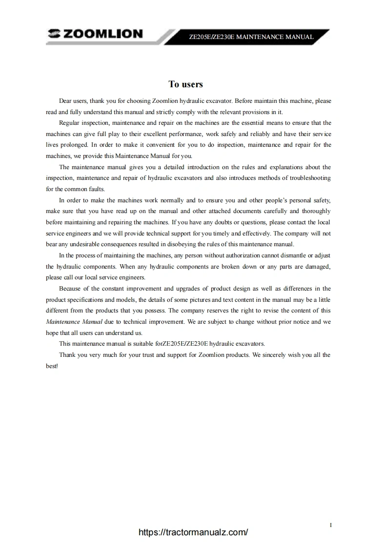 中联重科Zoomlion-ZE205e-Z230e-Excavator-维修维护手册含电器液压原理图找手册网2天前发布关注私信0.82MB73页043中联重科Zoomlion-ZE205e-Z230e-Excavator-维修维护手册含电器液压原理图此内容为付费资源,请付费后查看¥39¥49黄金会员免费钻石会员免费登录购买付费资源 第1页 / 共73页 第2页 / 共73页 第3页 / 共73页 第4页 / 共73页 第5页 / 共73页 第6页 / 共73页 第7页 / 共73页 第8页 / 共73页 第9页 / 共73页 第10页 / 共73页 试读已结束,还剩63页,您可下载完整版后进行离线阅读 THE END中联重科/山河智能/Doosan/BT 文本预览 ZOOMLON7E205E/ZE230EHYDRAULIC EXCAVATORMAINTENANCE MANUAL(∈First Edition of January 2013https://tractormanualz.com/ 查看更多 收起部分 喜欢就支持一下吧收藏