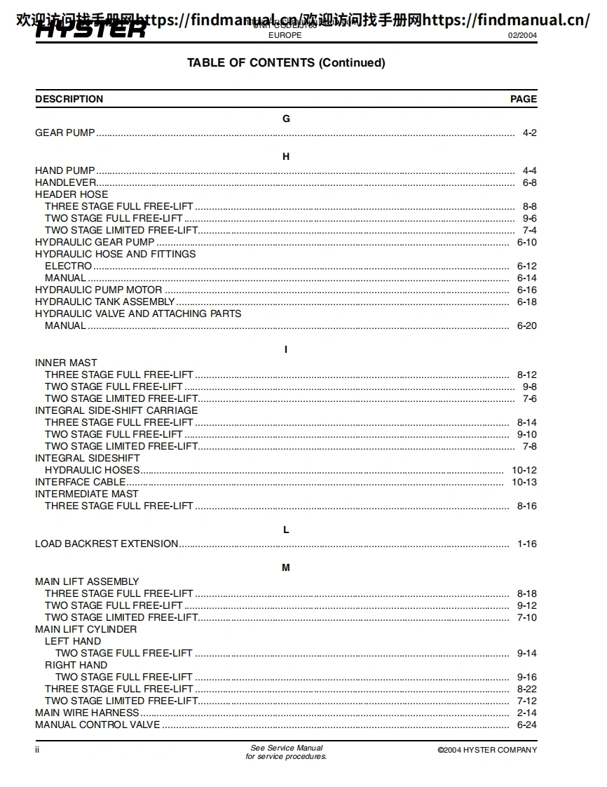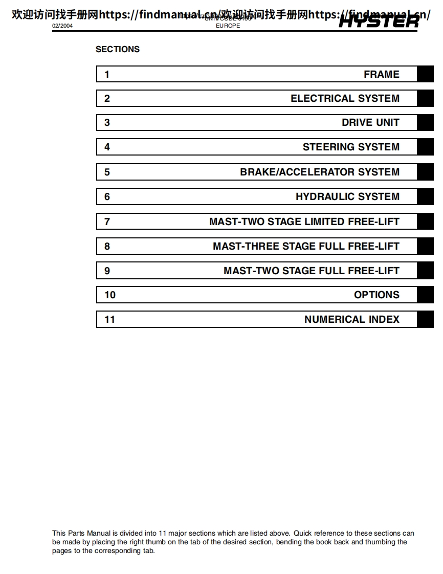 海斯特叉车Hyster-J1.60XMT-2.00XMT(J160)-Parts-Catalog-Manual维修手册含电器液压原理图找手册网11小时前发布关注私信4.66MB246页036海斯特叉车Hyster-J1.60XMT-2.00XMT(J160)-Parts-Catalog-Manual维修手册含电器液压原理图此内容为付费资源,请付费后查看¥39¥49黄金会员免费钻石会员免费登录购买付费资源 第1页 / 共246页 第2页 / 共246页 第3页 / 共246页 第4页 / 共246页 第5页 / 共246页 第6页 / 共246页 第7页 / 共246页 第8页 / 共246页 第9页 / 共246页 第10页 / 共246页 试读已结束,还剩236页,您可下载完整版后进行离线阅读 THE END约翰迪尔/戴纳派克/海斯特 文本预览 欢迎访问找手册网https:/findmanualcn欢迎访间找手册网https:/findmanual.cn/PARTSMANUALJ1.60XMT-2.00XMT(J160)CUSTOMER EDITIONHYSTER1556469©2004 lyster Company02/2004 查看更多 收起部分 喜欢就支持一下吧收藏
