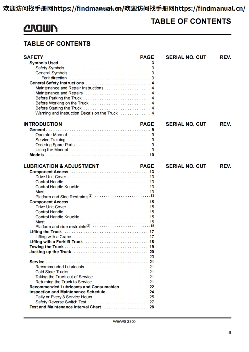科朗叉车Crown-WE2300-Service-Manual操作与维修手册含电器液压原理图找手册网3天前发布关注私信10.26MB432页047科朗叉车Crown-WE2300-Service-Manual操作与维修手册含电器液压原理图此内容为付费资源,请付费后查看¥39¥49黄金会员免费钻石会员免费登录购买付费资源 第1页 / 共432页 第2页 / 共432页 第3页 / 共432页 第4页 / 共432页 第5页 / 共432页 第6页 / 共432页 第7页 / 共432页 第8页 / 共432页 第9页 / 共432页 第10页 / 共432页 试读已结束,还剩422页,您可下载完整版后进行离线阅读 THE ENDJLG/CROWN/Bobcat 文本预览 欢迎访问找手册网https:/findmantal.on/欢迎访间找手册网https:/findmanual.cn/a▣WfWEWE/WS 2300 SERIESMAINTENANCE MANUALGabelstarlerT合购第规装小cnowrMOrder number:812567-006Revision:B.Printed in Germany 查看更多 收起部分 喜欢就支持一下吧收藏