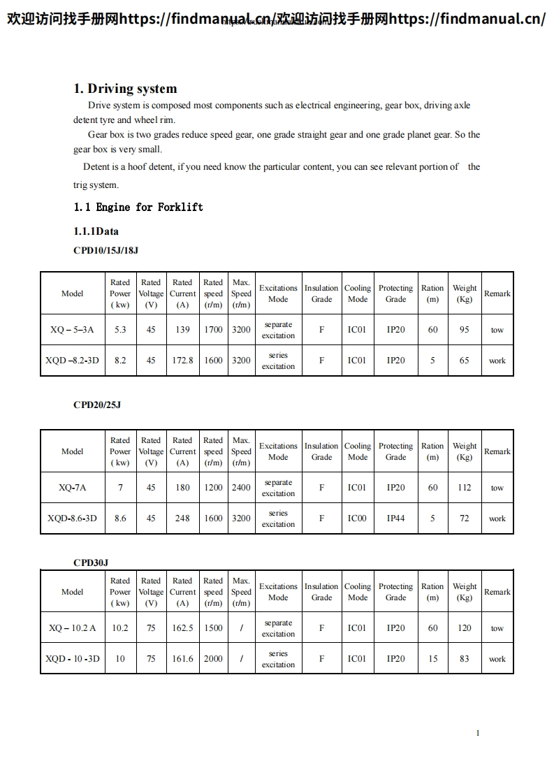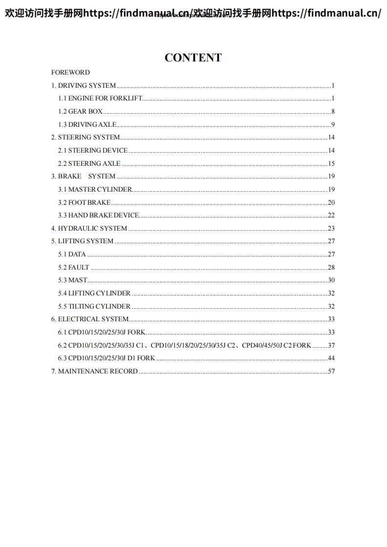 杭州叉车HANGCHA-CPD10_15_18_20_25_30_35J-C1-Service-Manual操作与维修手册含电器液压原理图-找手册网